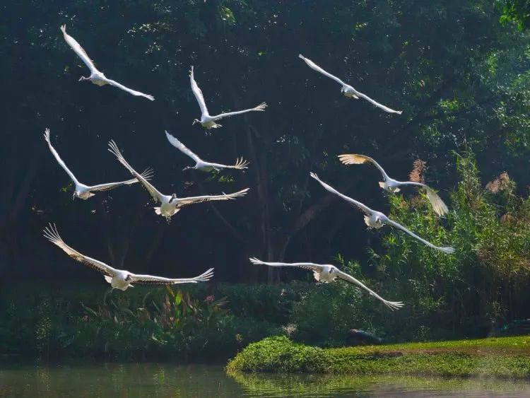 拥有丹顶鹤、白鹤、黑颈鹤等11种珍稀鹤类