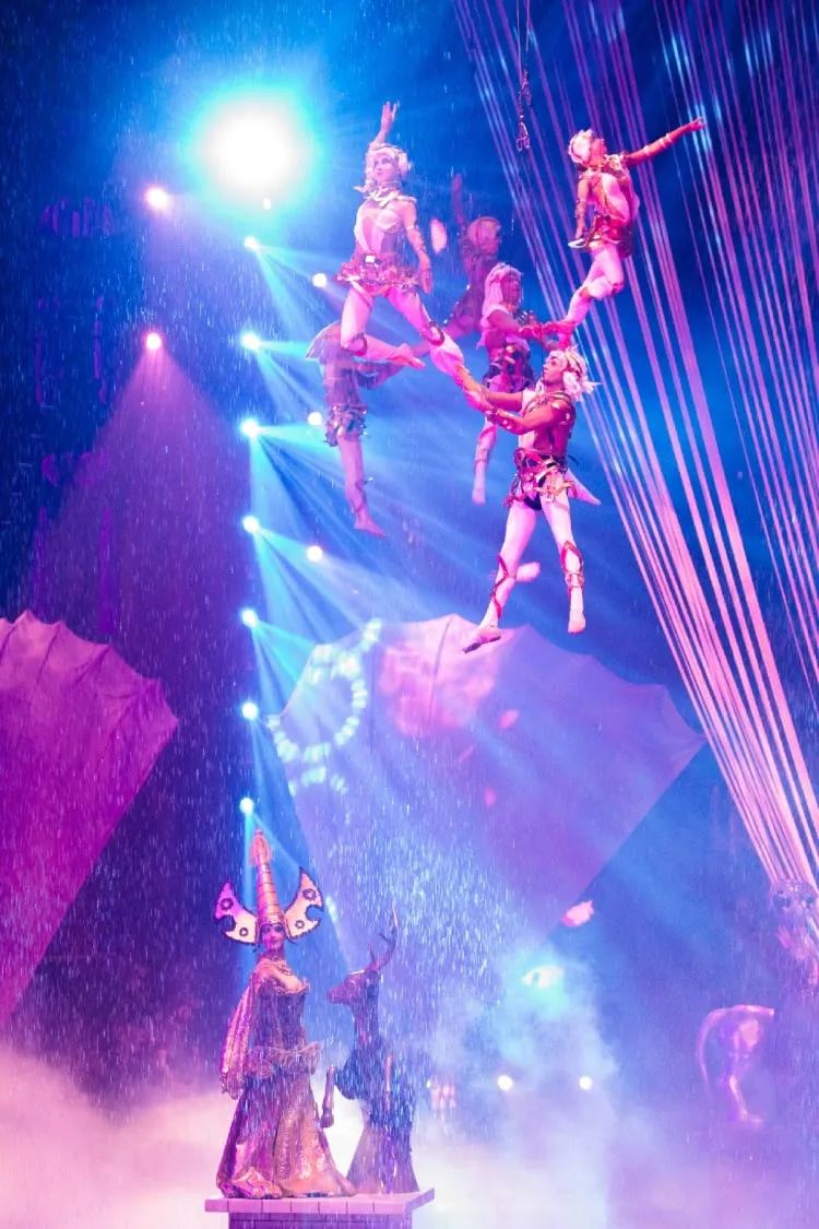 空中舞者浪漫起舞,灵动活泼的马戏精灵片刻化身守护使者纷纷围绕着女王们;当你还陶醉在这如梦如幻的场景中,被突然传来的歌声拉到了另外一个梦境,舞台中央缓缓升起了一位美丽的仙子,原来是拥有天鹅绒般柔和悦耳的完美嗓音的伊丽娜化身妙丽仙子献唱马戏,动听嘹亮的歌声环绕着整个马戏场馆,此刻此景,让你体验到不一样的视听盛宴。