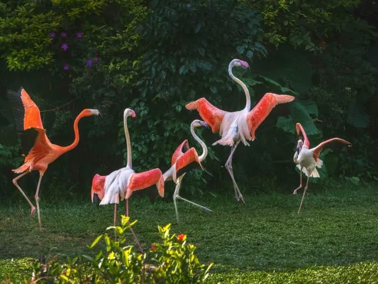 火烈鸟羽毛颜色鲜艳,极引人注目,是鸟类中超红的物种之一,被称为“世界上火光永不熄灭的一大奇观。