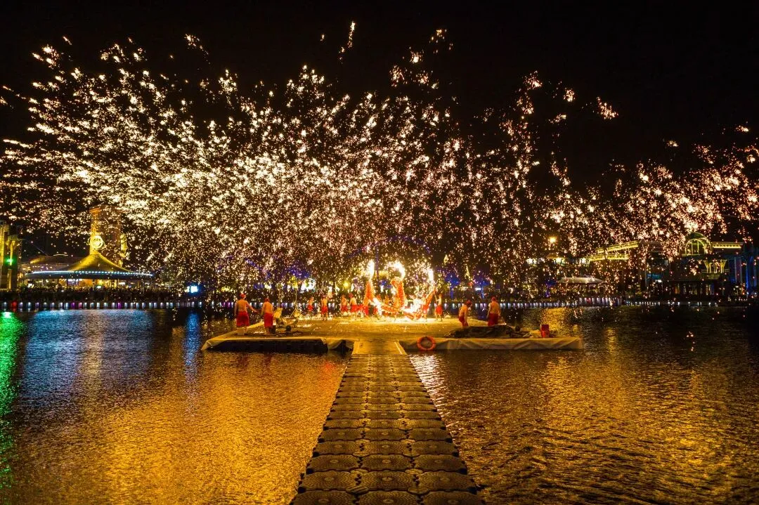 活动内容:融合非遗与光影科技,推出45万方襄阳最大自贡非遗彩灯会,打造新春大庙会及奇梦城堡光影秀、火龙钢花等五大新禧大秀,奇趣童年、云海汤泉同步推出特色活动,呈现传统年味奇幻春节。