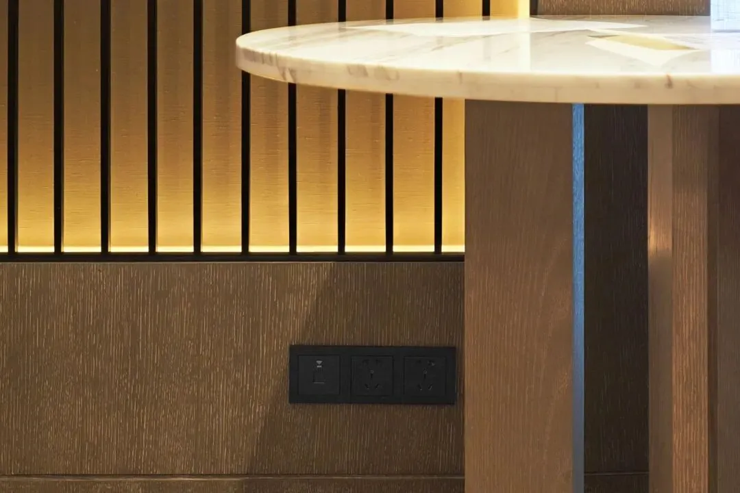 最让我觉得贴心的,是酒店无处不在的细节设计,完全把带娃家庭和有办公需求的游客考虑到了极致。进门的小圆桌旁的墙角,居然专门设置了网线和插座的组合,偶尔需要处理工作,坐在小圆桌旁架起笔记本,比在电视下的柜桌办公舒服太多。