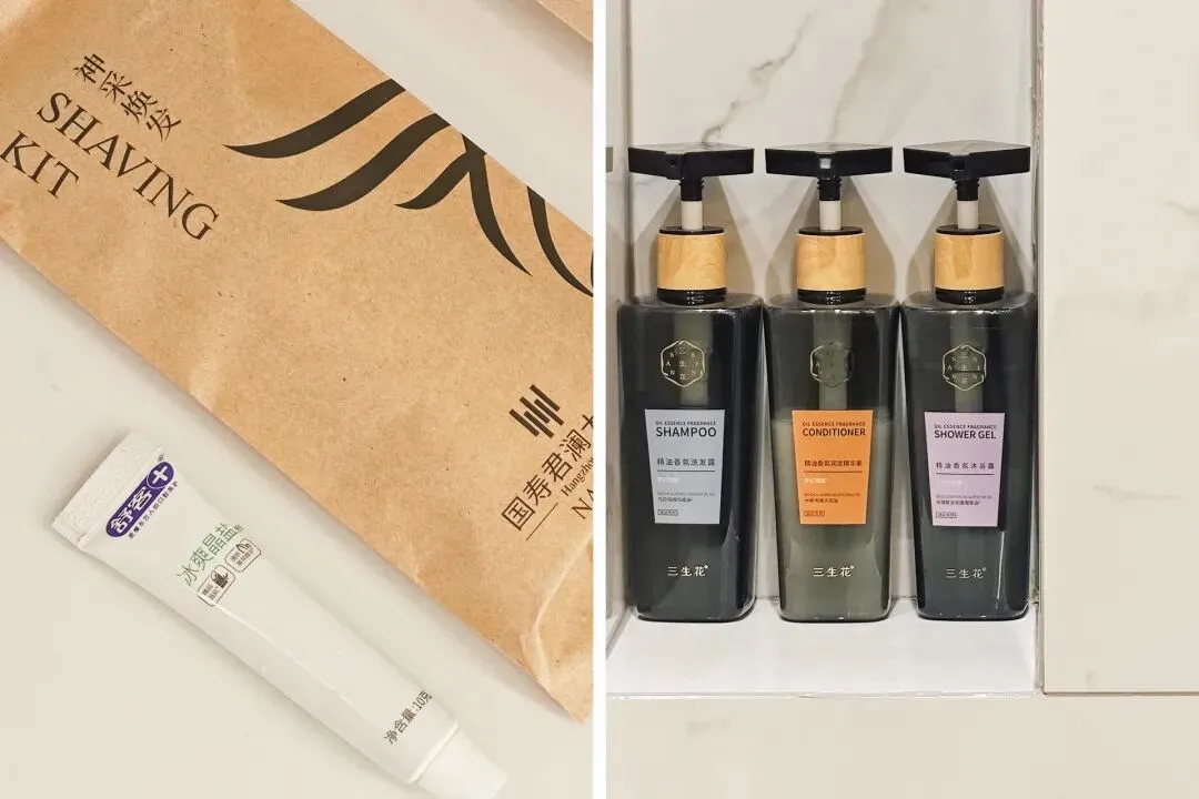 酒店的日常用品也完全不敷衍,不是那种用一次就想扔的廉价货,牙膏居然是我们家里一直用的舒客,牙刷的软硬度适中,敏感人群用着也不戳牙龈,沐浴露和洗发水的味道舒服,洗完皮肤和头发都不会干,这些细节都很加分。