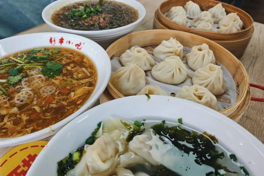 当天上午到达杭州,直奔经过杭州文旅认可的新丰小吃(庆春路分店),听说是老杭州都爱去排队的市井馆子,性价比高到离谱。这家店服务员多为老阿姨,很热情。堂食在二楼,我在楼下先打包了煎饺、菜包、豆沙包垫肚子,楼上又一口气点了牛肉粉丝、虾肉小笼、鲜肉小笼、虾肉馄饨、西湖牛肉羹。加上打包的,整整点了 8 份吃的,原本以为会很贵,结果结账才40多块,真的惊到我了!而且都是这边买单,边上即时取餐。味道也特别地道,尤为符合江浙沪人群的喜好。虾肉小笼皮薄馅大,咬一口爆汁,西湖牛肉羹鲜美好喝,煎饺外酥里嫩,菜包的馅料新鲜。补充一点,碗碟都是传统陶瓷,不是密胺塑料,细节好评。