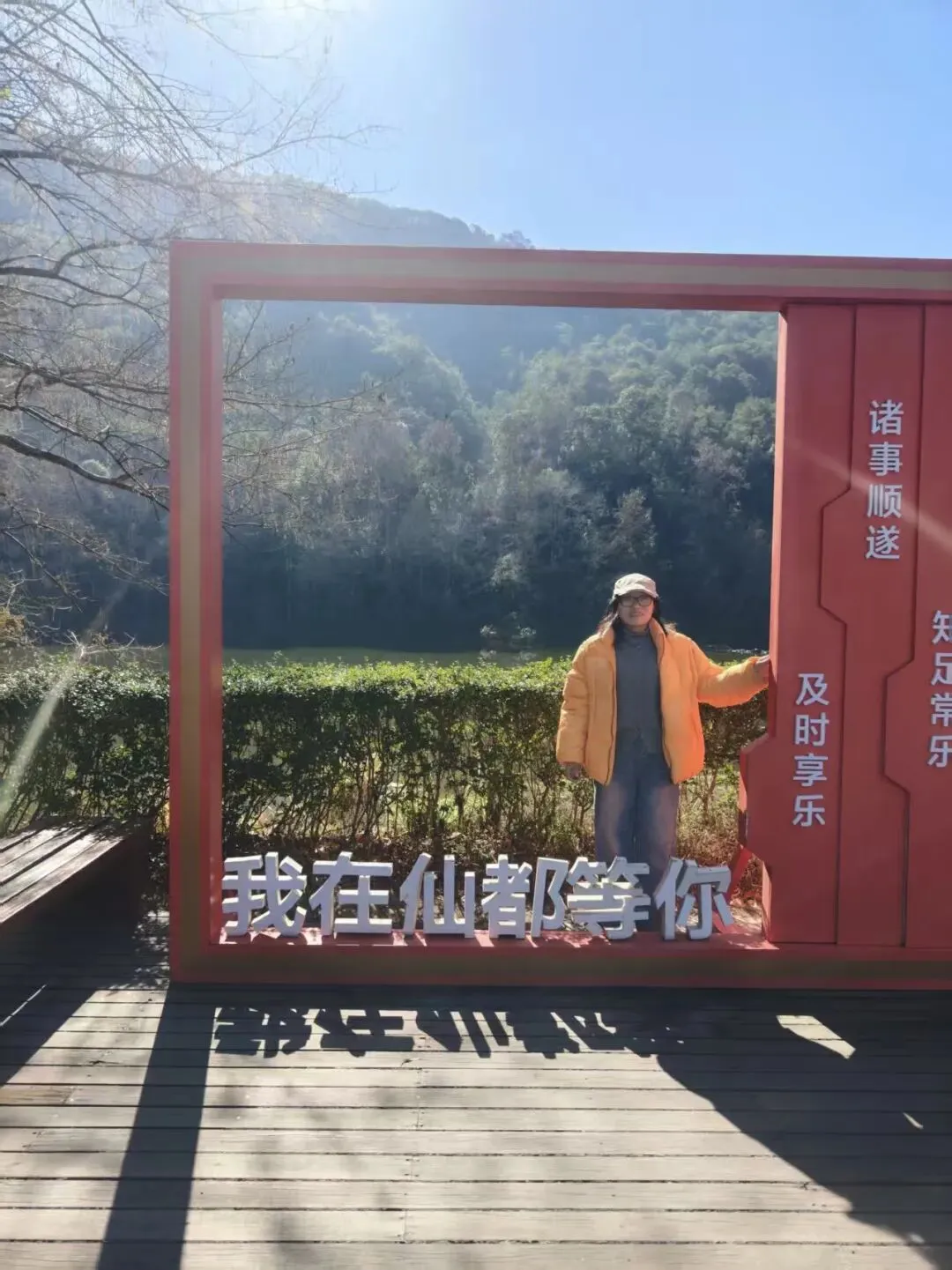 第一次绕过弯弯曲曲的山路走进这景点里的村庄。小美女早就告诉我到景点的时候要给她打电话,要不得收门票。在这山顶上的九仙胜境的两层门楼高大壮观,我穿过门楼里宽阔的场地,几处门禁的最右边有一条下坡路,有个岗亭,我跟着导航到了岗亭的窗口,“我要进里面接人。”接谁?”门卫是位胖乎乎的青年。“一位女士,应该是你们领导。”“谁的领导?”青年抬头望着我:“管你们的吧?”我把电话递给他。“你登个记进去吧。