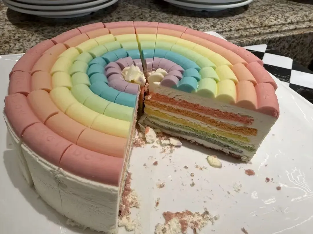 今天还有奈尔宝同款的彩虹蛋糕