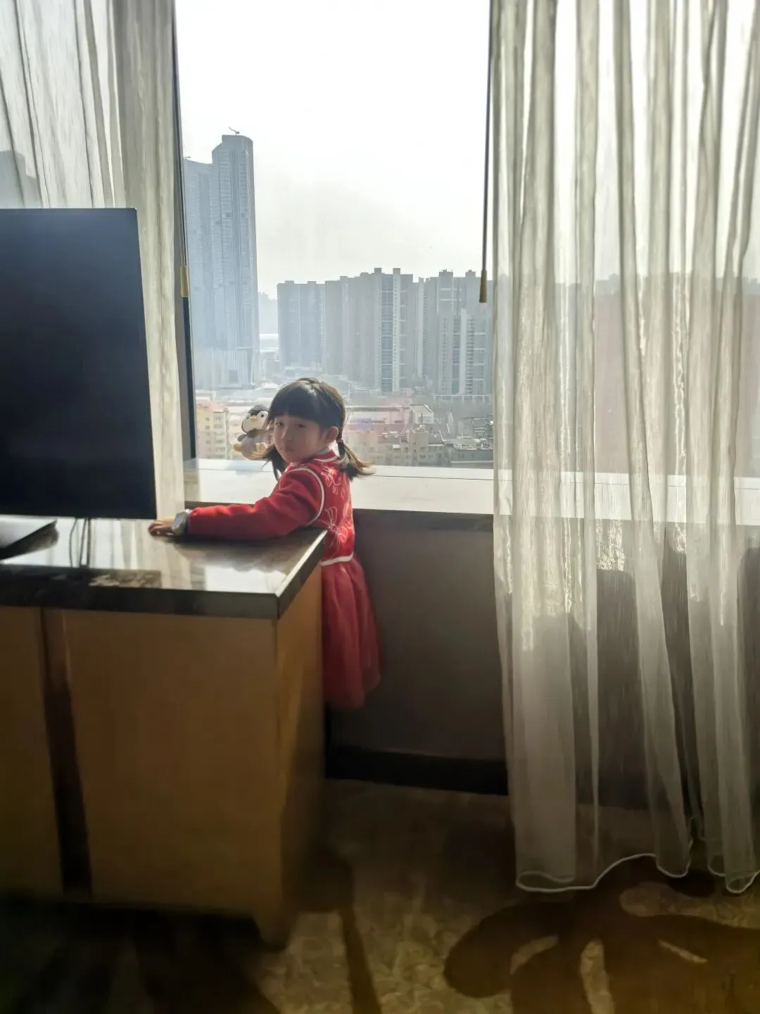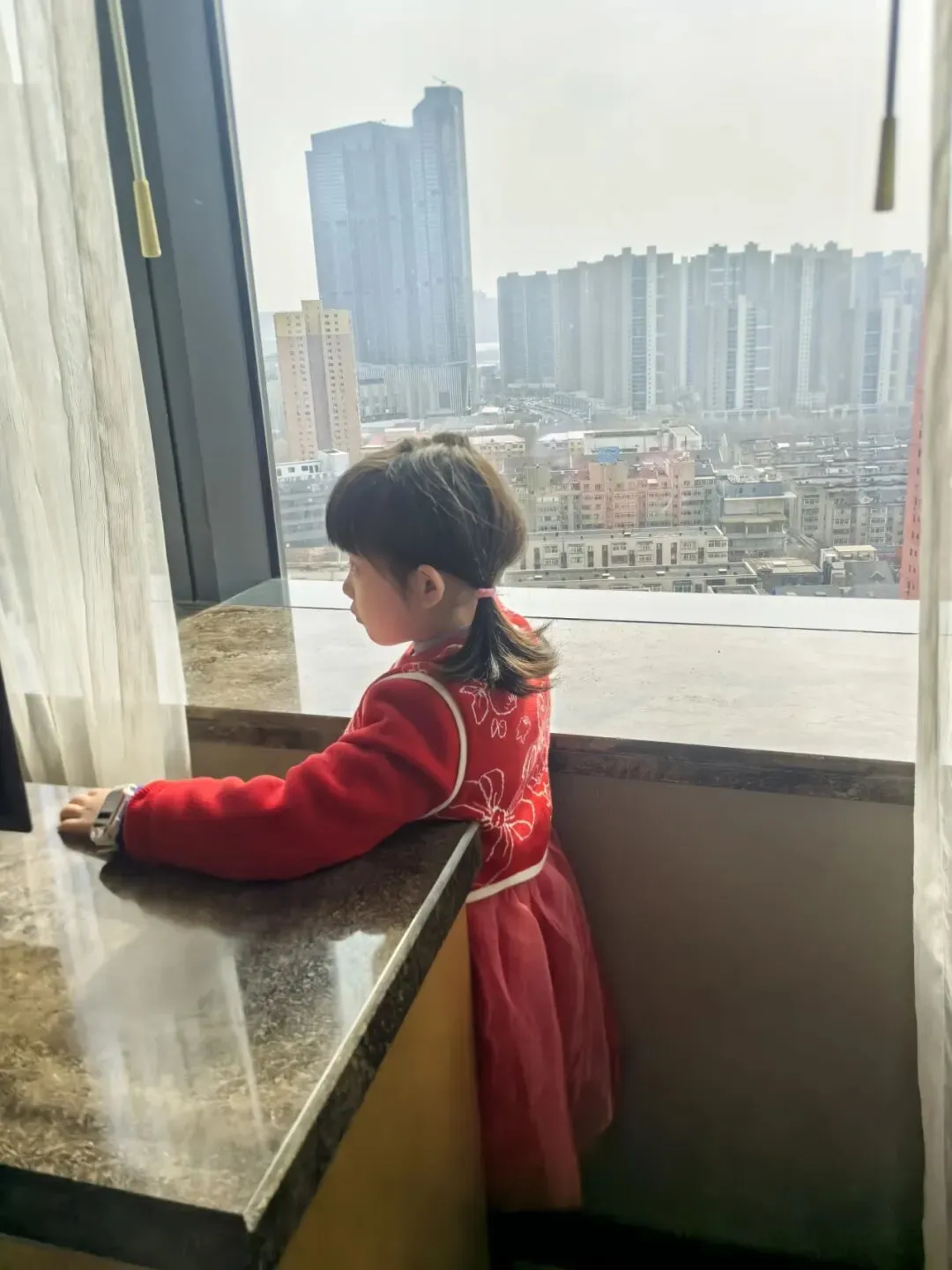一到酒店我就坐在窗台上看风景。