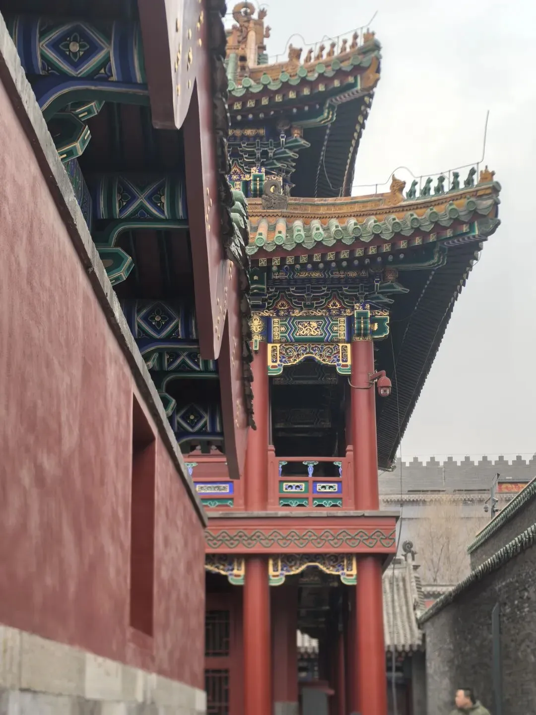 黄瓦绿剪边:屋顶铺黄琉璃瓦,但边缘用绿色琉璃瓦装饰,色彩对比鲜明