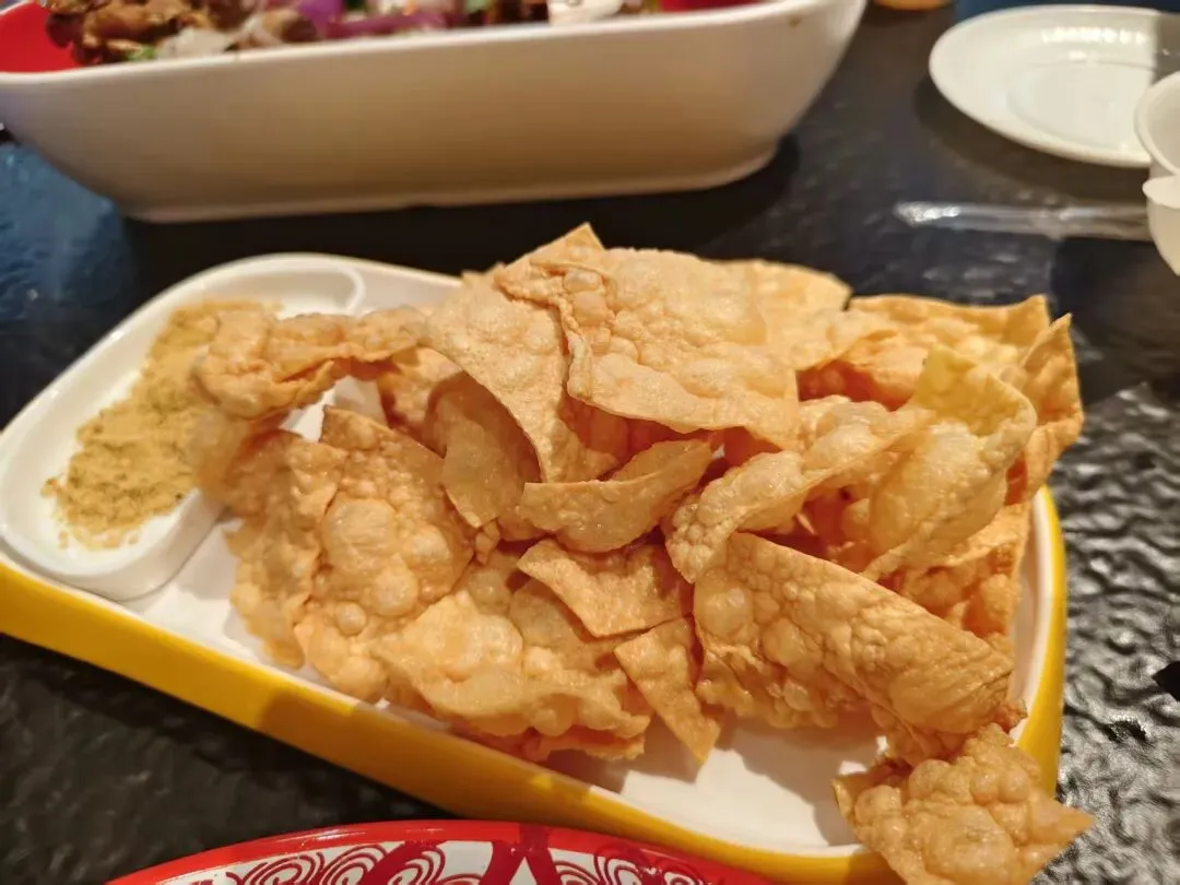 我吃了几片炸豆皮。