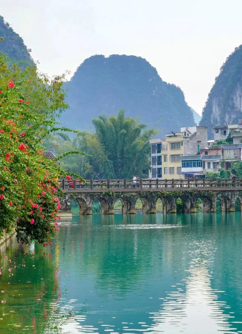 河两岸是典型的广西喀斯特地貌,石山拔地而起,竹林倒映在水面上,偶尔有村民划着竹筏经过,速度很慢,慢到你都怀疑他是不是在赶路。真正起作用的不是风景本身,是这个地方没有被过度商业化,你能感受到一种松弛感,一种不用时刻保持状态的自在。很多人去了回来都说,布泉河最大的好处就是让你想起来小时候在乡下玩水的感觉,那种不用花钱、不用预约、不用排队的快乐。