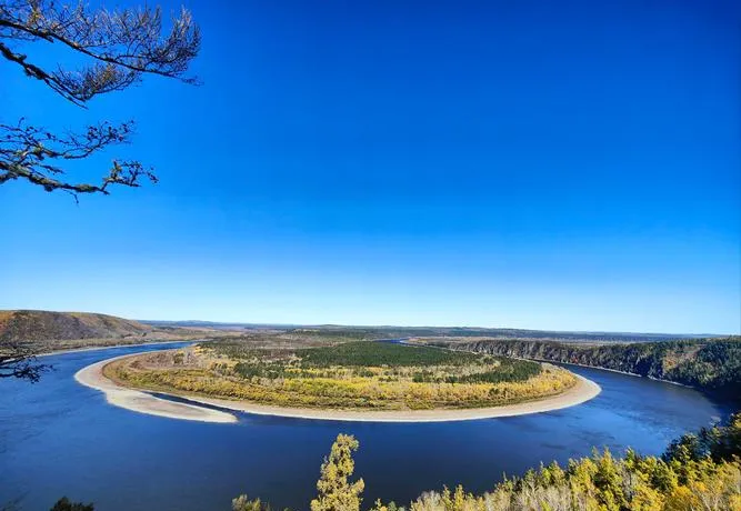 龙江第一湾是黑龙江在这里拐了个将近180度的大弯,形成了一个完美的Ω形,很多人看照片觉得这地方应该很壮观,但真去了才发现,壮观是壮观,可更多的是一种荒凉感,因为这里太偏了,周围除了树就是树,连个人影都看不到。