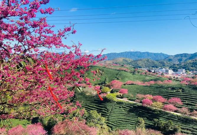 漳平的樱花茶园,2-3月份去刚好赶上花期,但这里的樱花跟其他地方不一样,它不是单纯为了看花种的,是茶农种在茶园里做点缀的,这就造成了一个很奇怪的景观,粉色的樱花开在绿色的茶园里,这种配色不是刻意设计的,是功能性决定的,但效果比那些精心设计的花园还好看。