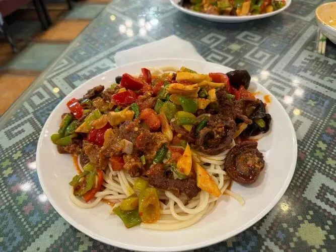 抓饭胡萝卜甜,米油亮,配酸奶解腻,走一天也不累。