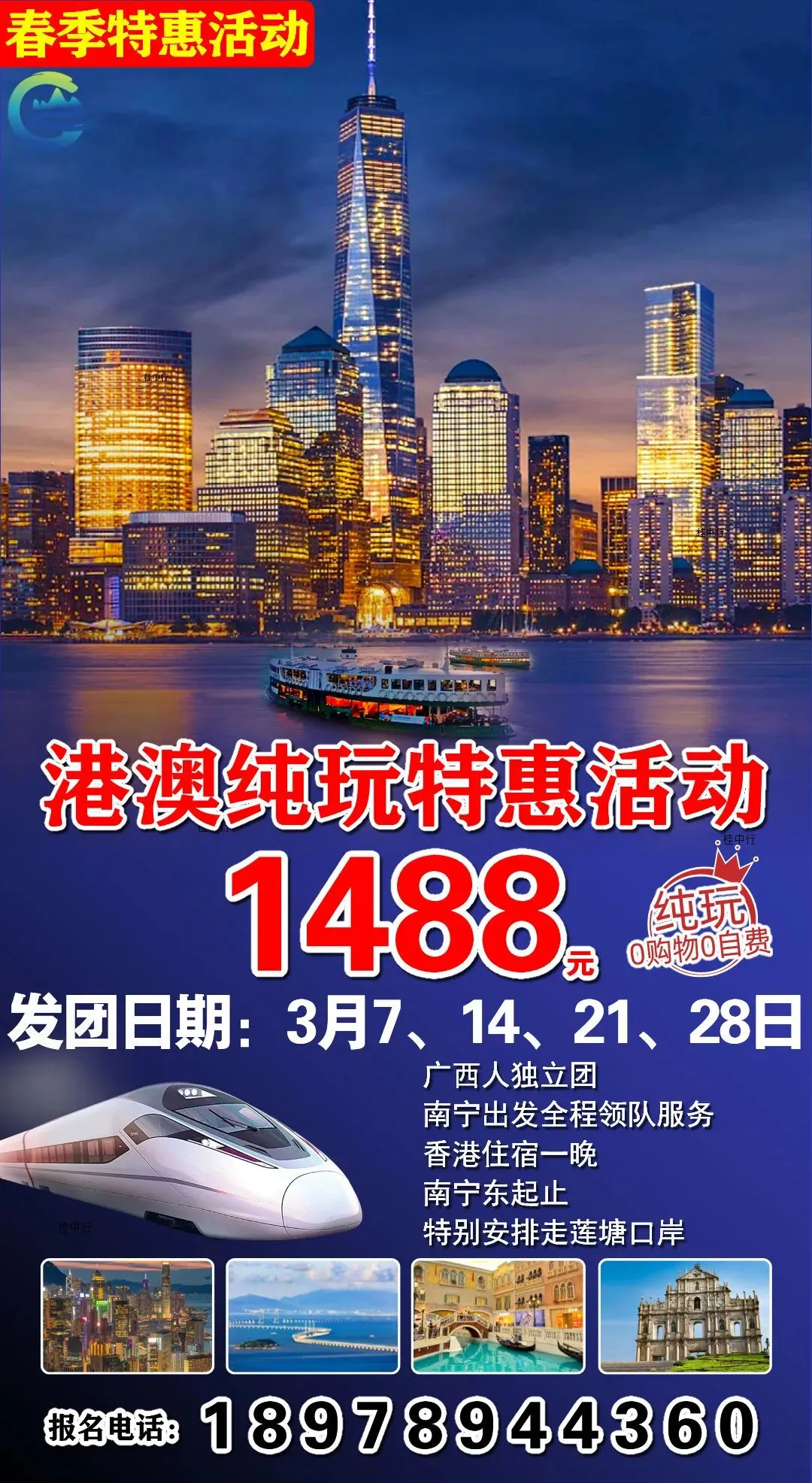 【港澳】3月 香港、 澳门旅游线路推荐 报名优惠!
