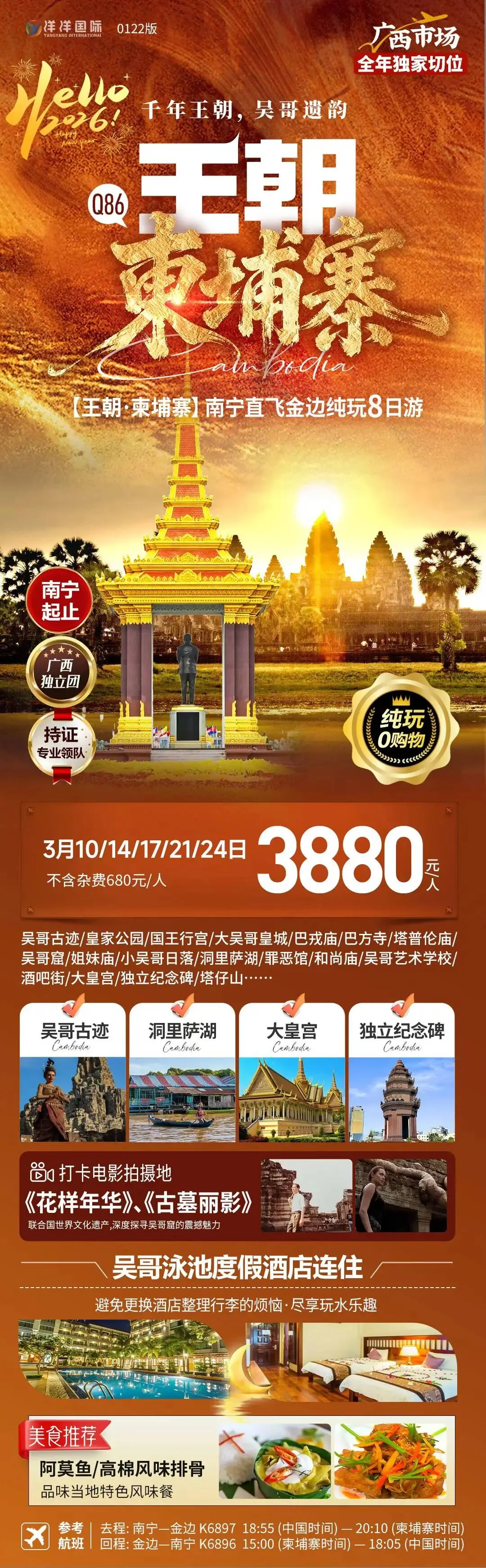 报名地址:南宁市青秀区民族大道115号现代国际大厦12楼1224室(地铁1号线,3号线金湖广场C1出口或D出口,出了地铁口即到达) 组团社:广西海外旅行社南宁第三分公司 广西康辉国际旅行社民族第一门市部