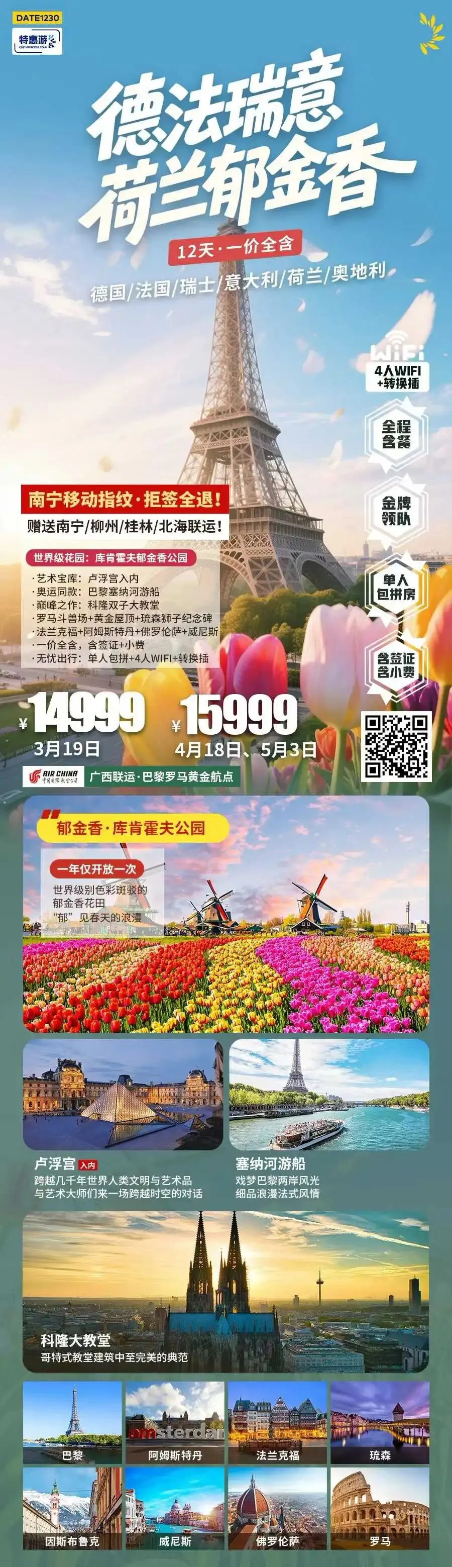 【出境】3、4月 出境旅游推荐 东南亚、中东非、南亚、欧洲等,报名优惠!