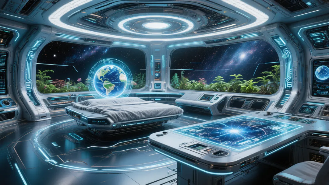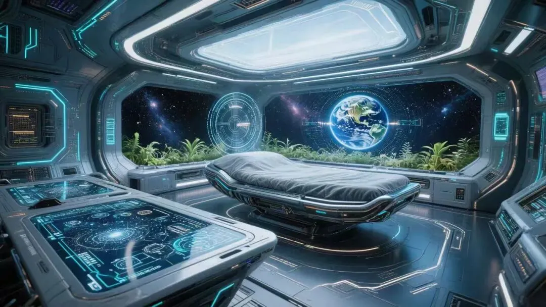 太空舱酒店:模块化舱体(直径4m)配备睡眠舱、观景窗,夜间模拟极光或星空投影,提供“失重睡眠模式”(通过床体倾斜15°缓解体液分布变化)。