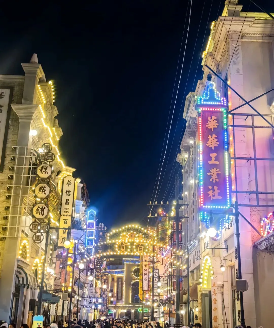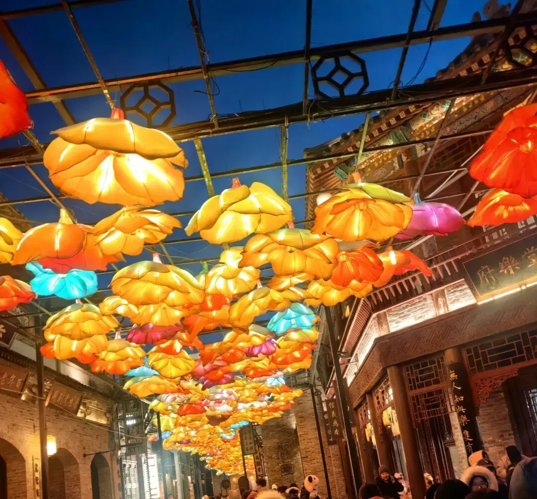 晚上的夜景也很美,里面有很多文创店卖一些文传产品,可以边走边逛。春节人很多 ,想要拍一组不带人的纯景观的照片都难。