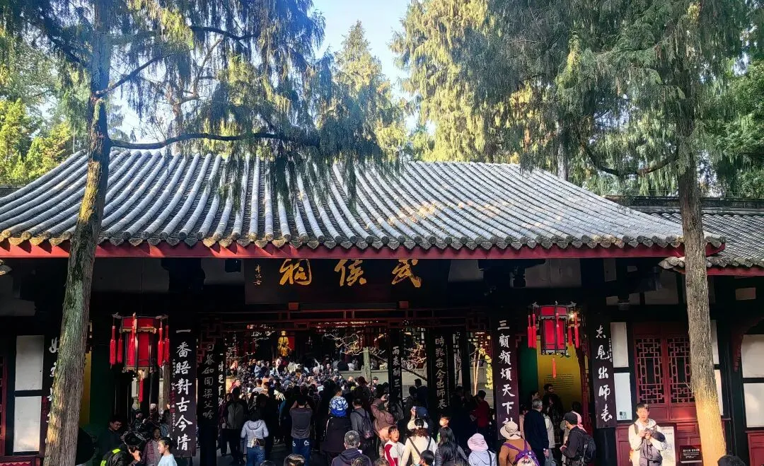 2026年春节假期想着带孩子出来玩,商量后决定来成都,第一天来到了成都武侯祠,春节假期人很多,进园后有导游推销说请导游带一人30元,搞价后说3个人给70元就行,一人发了一个耳机,戴上后听导游讲解。