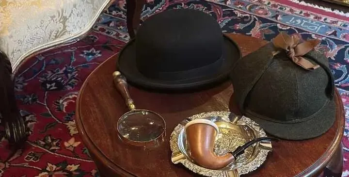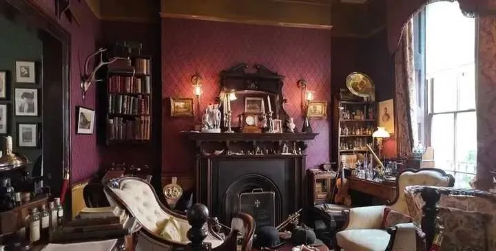 客厅和书房里有壁炉、扶手椅、满墙书籍、烟斗与小提琴,每一个角落几乎都能在小说里找到对应的画面。