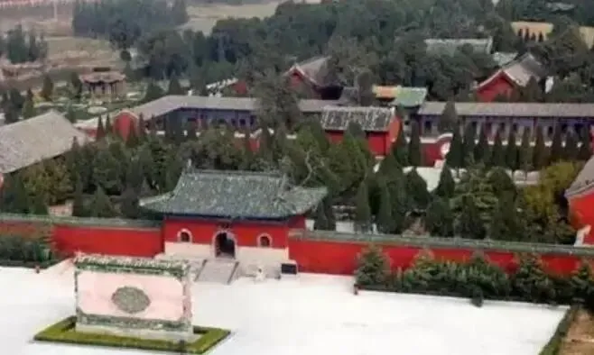 绕过比干庙正殿,后面即是墓亭,亭内竖着一块墓碑,被誉为“天下第一碑”。与大殿以阴阳墙相隔的天葬墓,位于园区后方,占地20余亩。