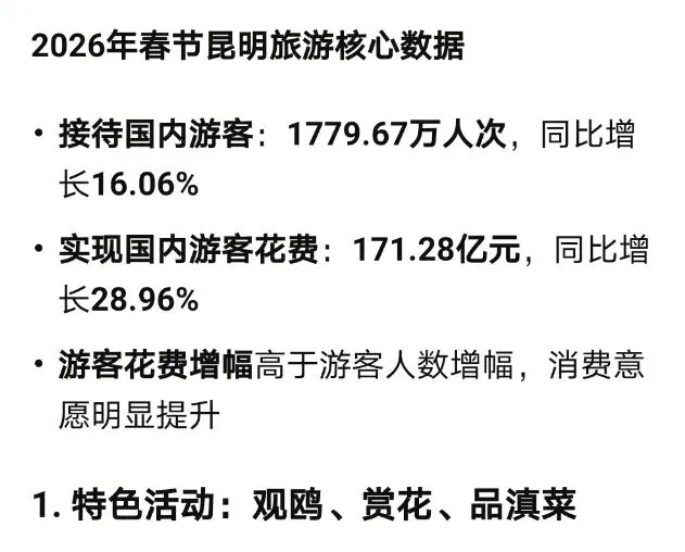 作为云南省会,昆明在这个春节交出了一份令人惊艳的成绩单:
