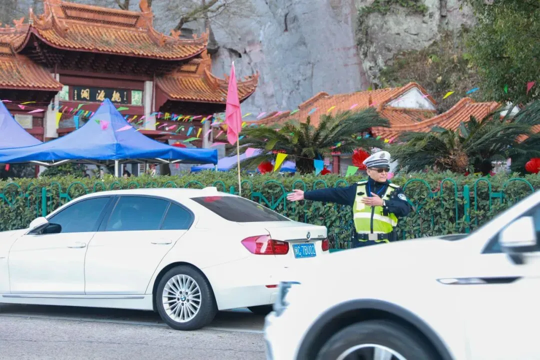 在景区主干道、出入口及停车场周边,民警定岗疏导交通,引导车辆有序通行、规范停放,快速处置路面轻微剐蹭,全力疏堵保畅,避免道路拥堵。同时采取步巡与车巡相结合的方式,对“一线天”、观景栈道、人流密集区等重点部位全天候巡逻检查,及时排查安全隐患,提醒游客看护好老人小孩、保管随身财物,筑牢景区安全防线。