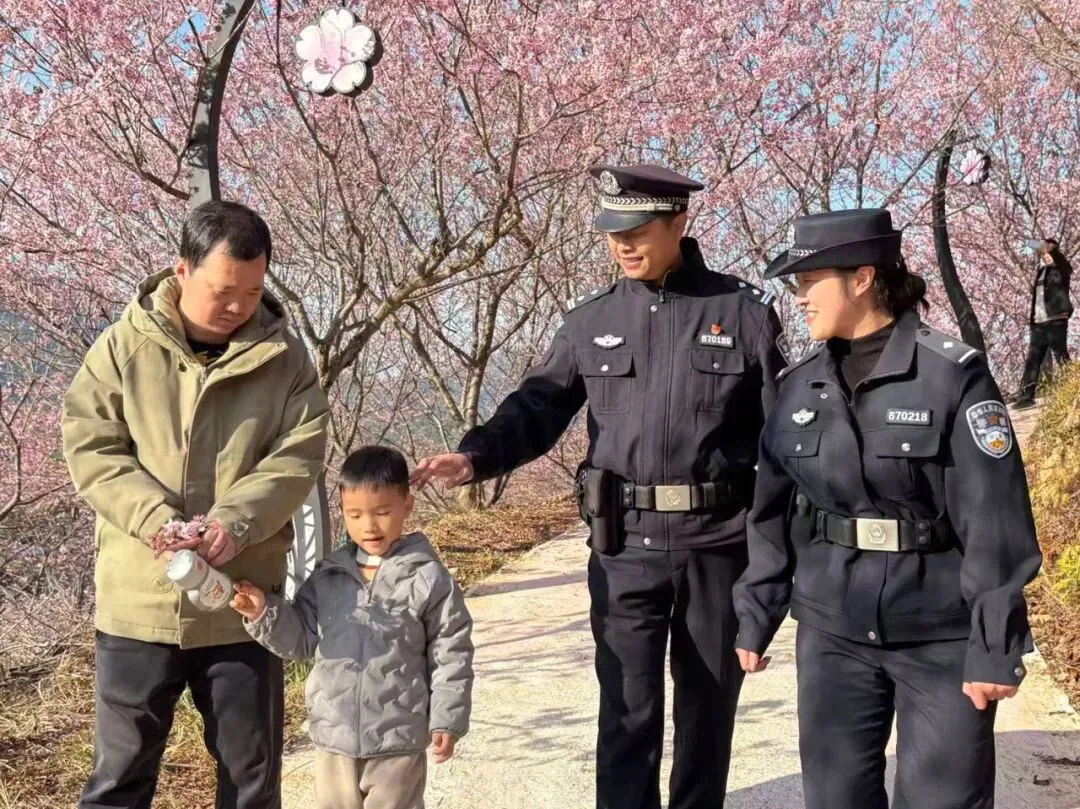 近日,三明清流赖坊樱花园迎来赏花高峰,千亩樱花竞相绽放,游人如织。清流县公安局赖坊派出所民辅警坚守景区一线,在巡逻值守、秩序维护的同时,及时为游客排忧解难,用暖心服务守护出游平安。