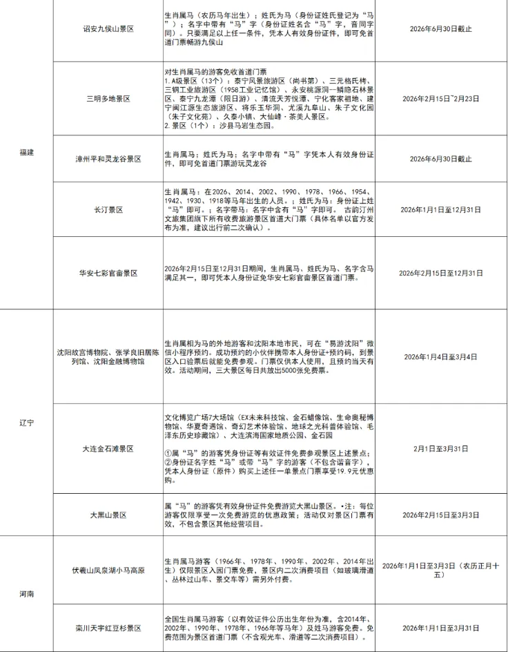 “马” 姓游客:身份证登记姓氏为 “马”,不分年龄、地域,全部都能享福利