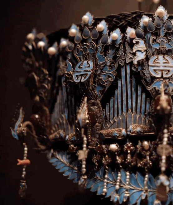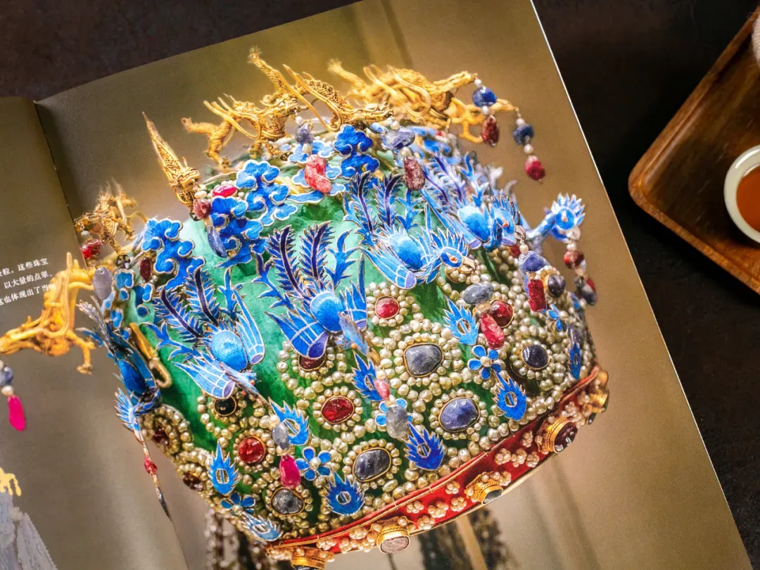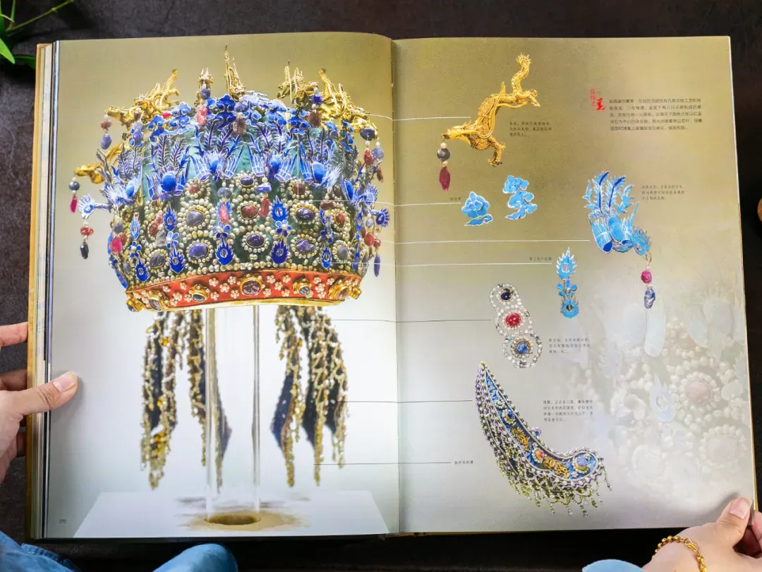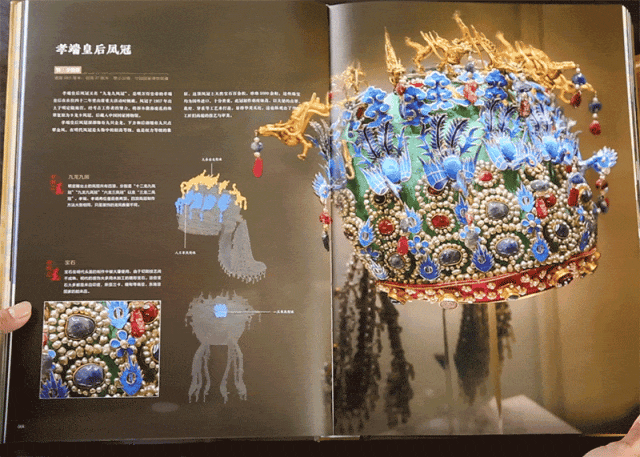每一颗珍珠、宝石,以及顶上的九条金龙衔珠+九只翠凤衔珠,一览无余。