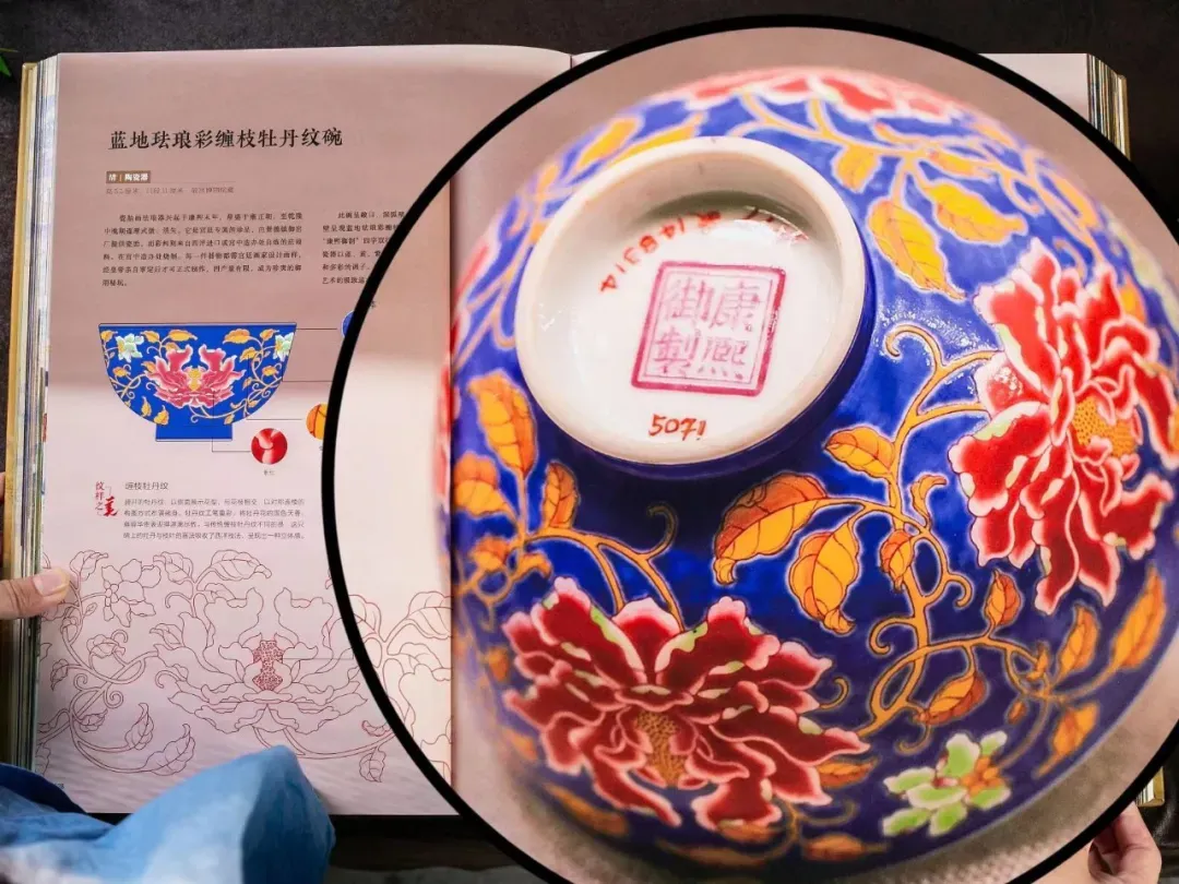 右边,是半倒扣状态实拍图,碗底“康熙御制”一目了然。