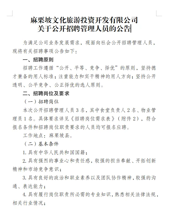 春风送岗促就业,麻栗坡文化旅游投资开发有限公司关于公开招聘管理人员的公告