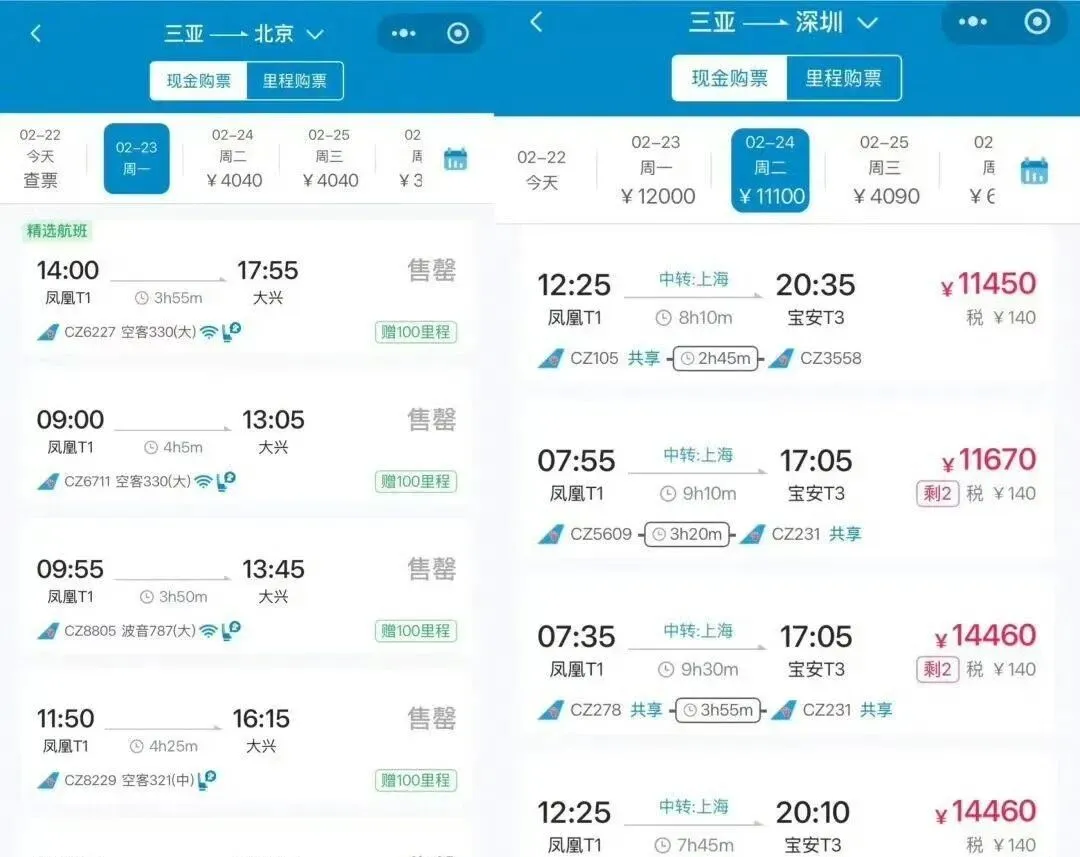 春节假期结束,三亚大批游客因机票暴涨滞留。有人晒出截图,返程机票动辄万元以上,直呼“这哪是机票,简直是赎金!”