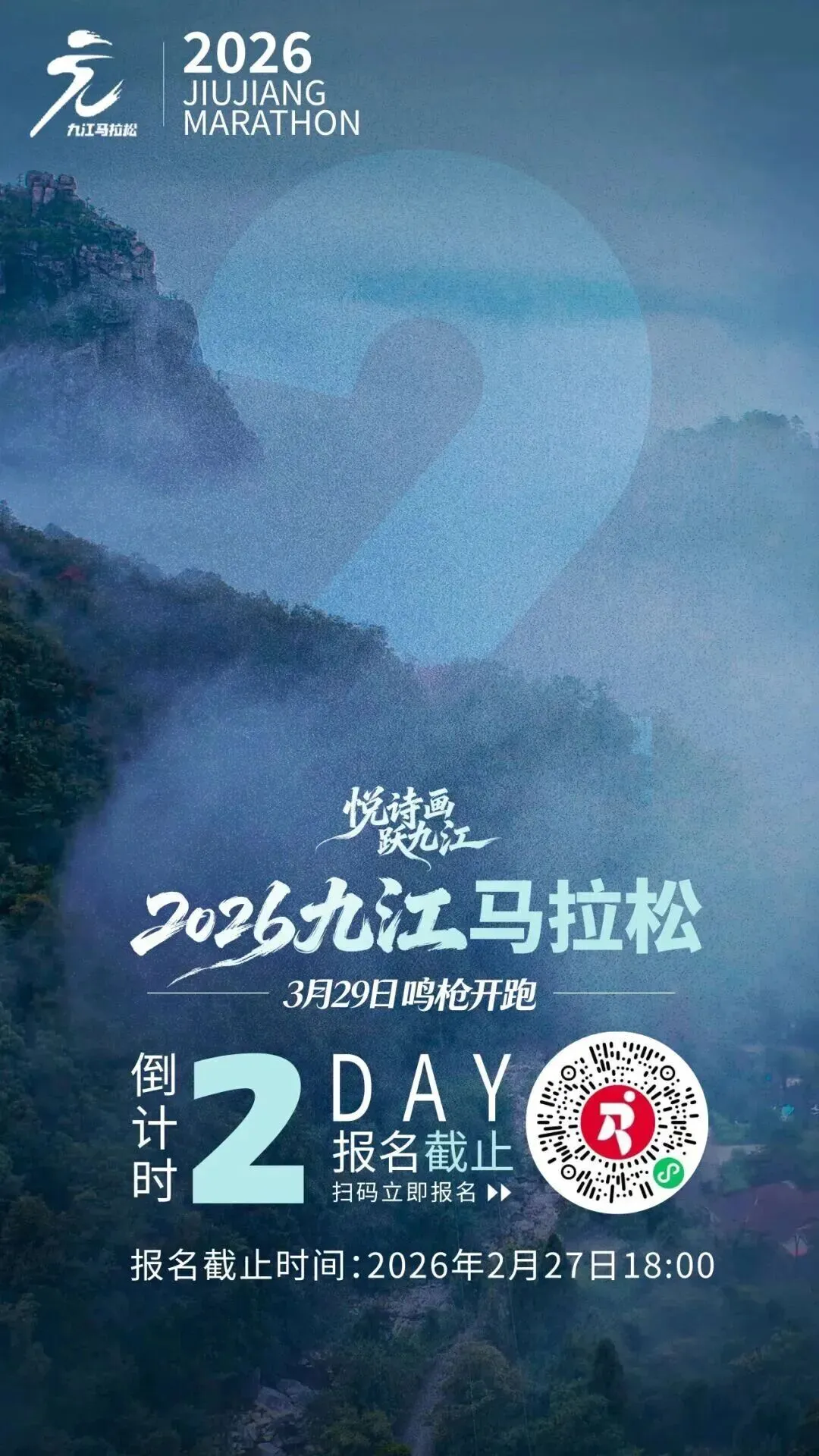 3月29日,九江马拉松,报名2月27日18点结束🔚!