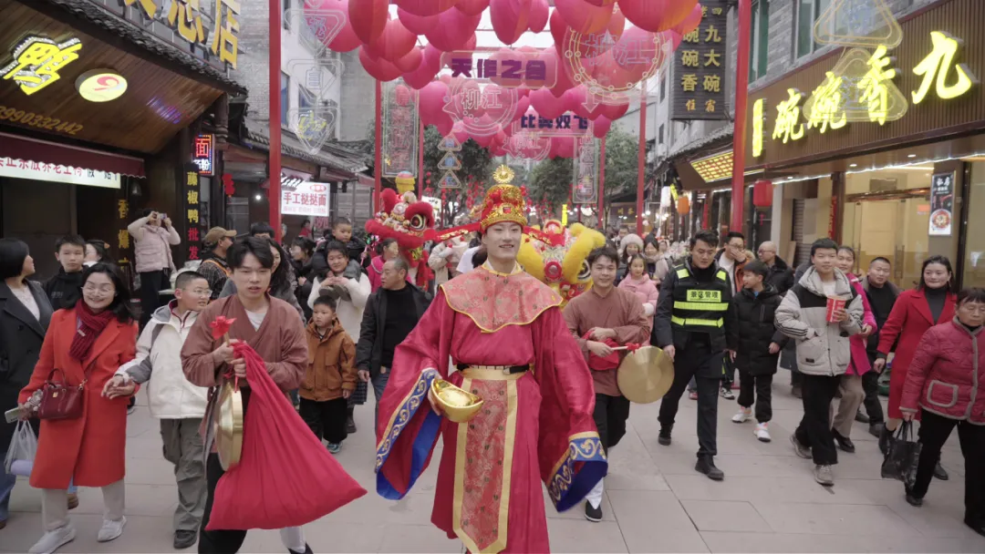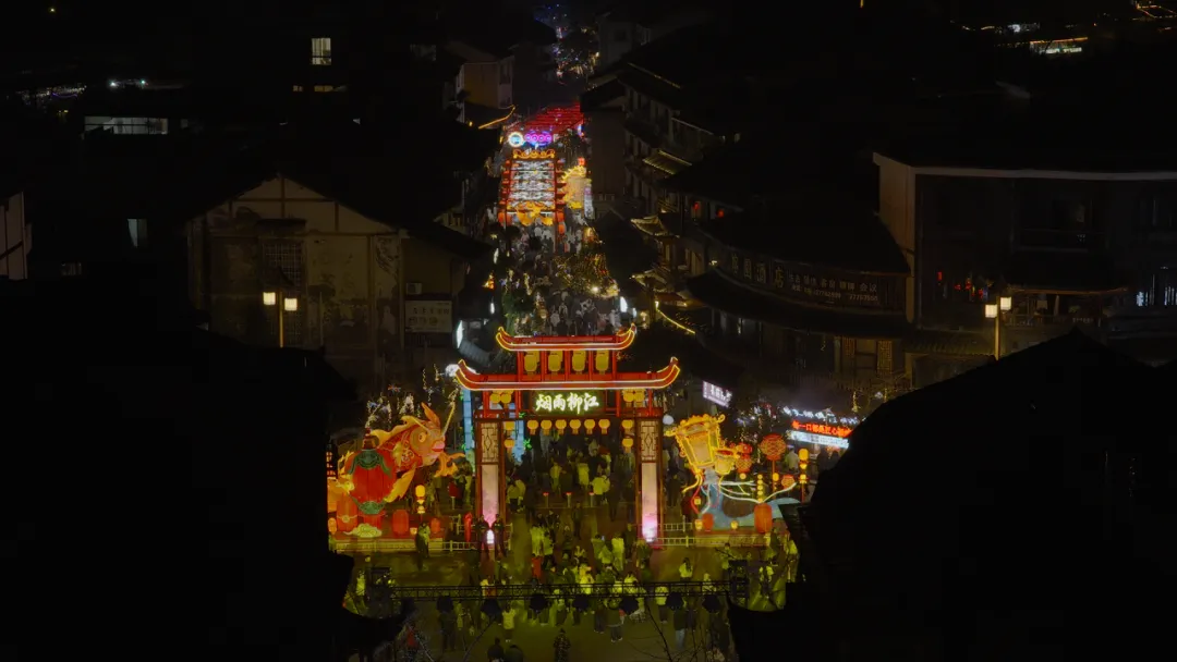 柳江古镇景区以“焰映柳江·春贺玉屏”为主题,深度挖掘本土传统民俗文化,通过非遗民俗、水幕电影、灯光秀、烟花秀等丰富多元的业态形式,让八方游客在人间烟火中感受地道中国年。