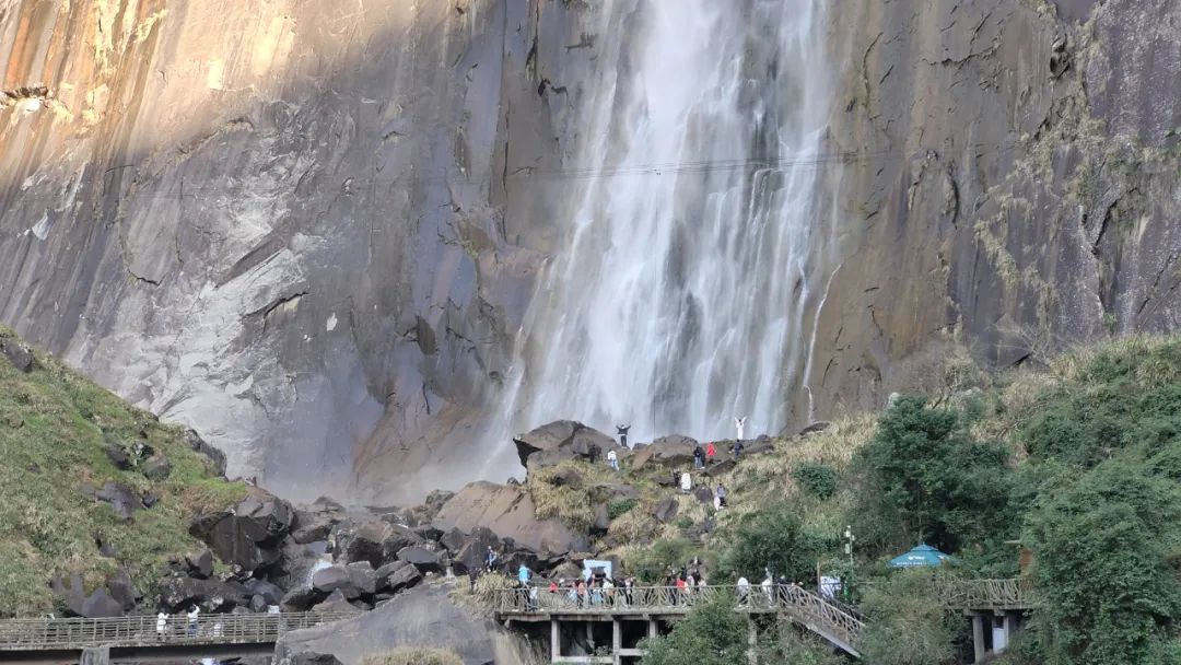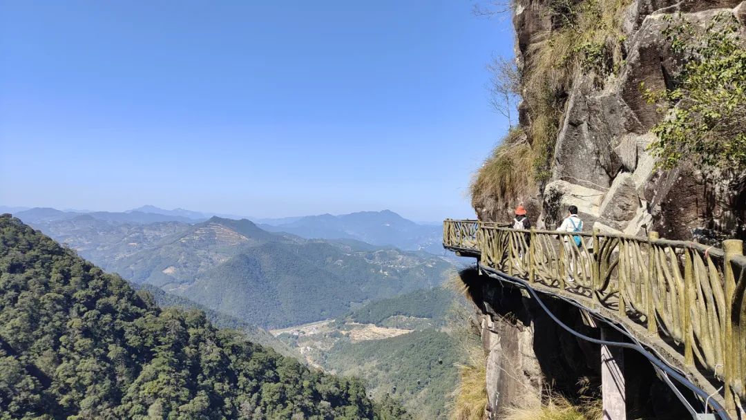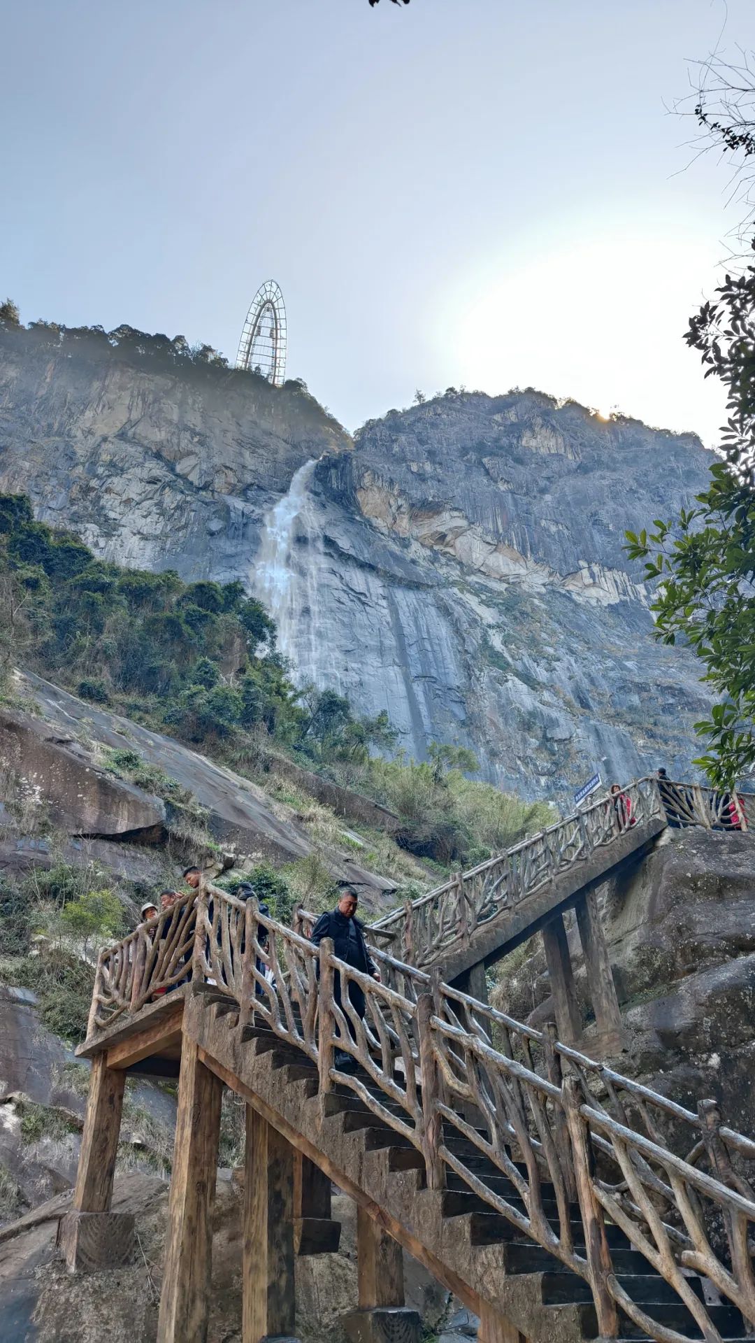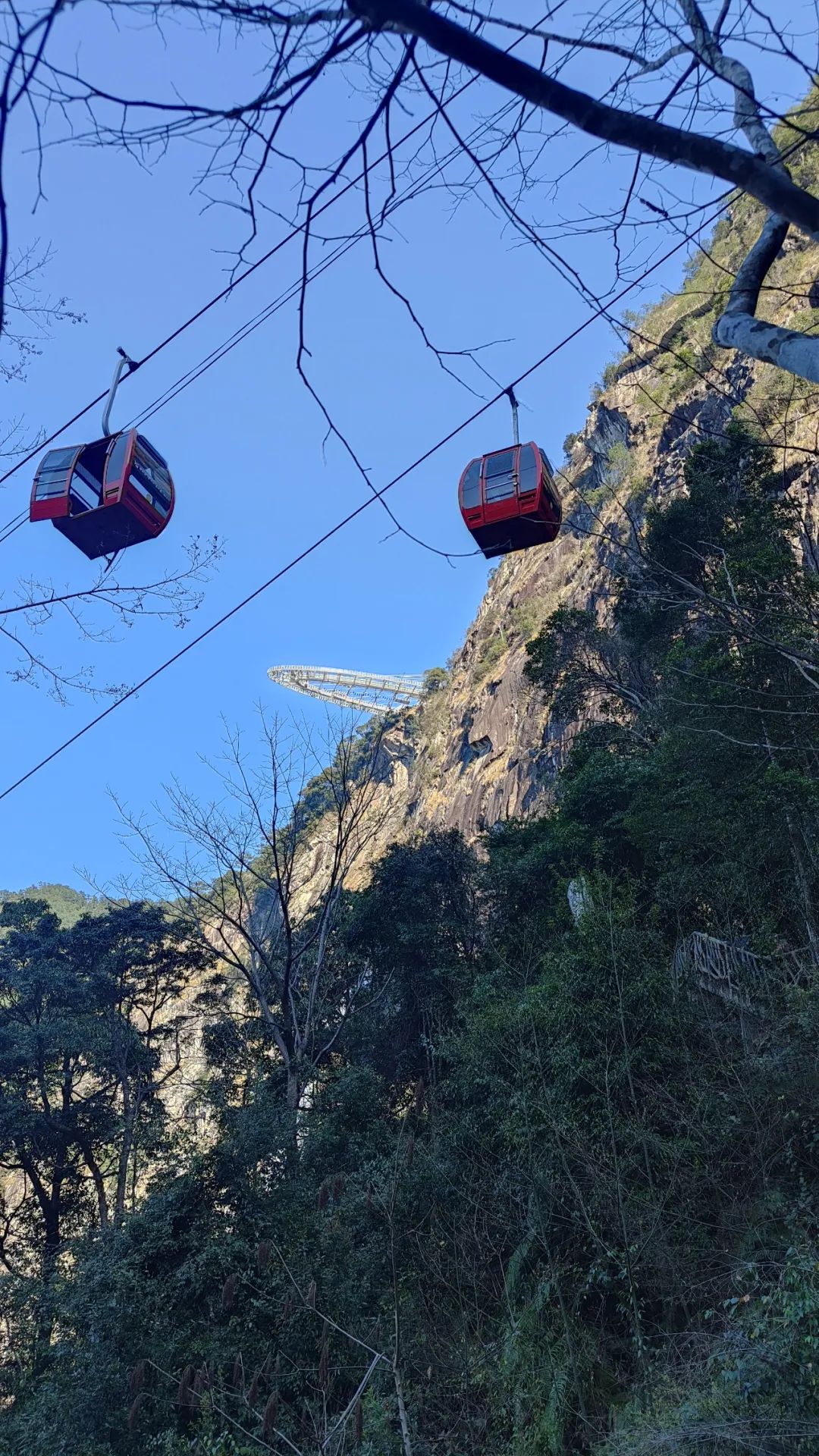 岱仙瀑布索道(上、下各30元):小型索道,低速,半山腰(岱仙瀑布)《--》金凤附近(到天空之心观景台及悬崖栈道)。1800个台阶,路况非常好,不会非常陡峭,下山约1小时,上山也差不多。当索道太拥挤时,景区鼓励大家步行。