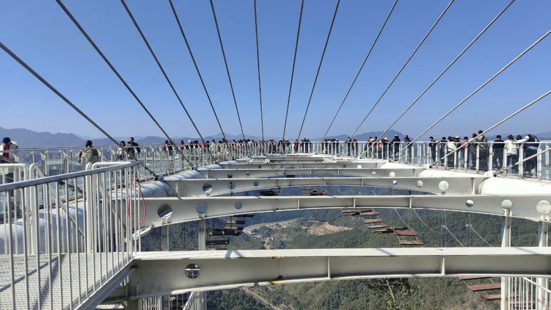 世界垂直高差最大的单边玻璃悬廊晃桥 330.9米
