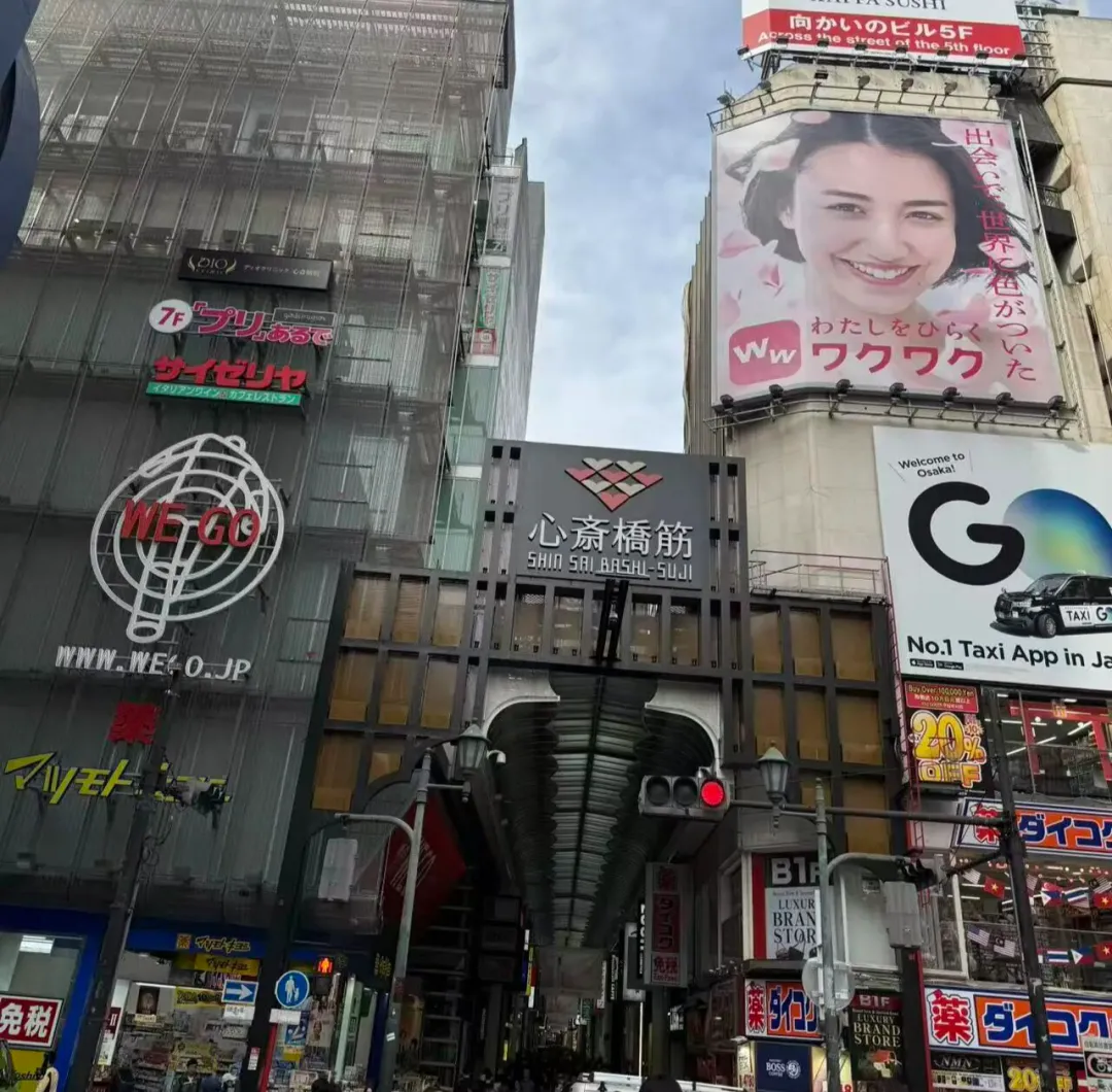 第四天上午从有马返回大阪环球影城附近的酒店。寄存完行李以后,去心斋桥逛街,陪孩子们拍照打卡几个有名的景点,购物。