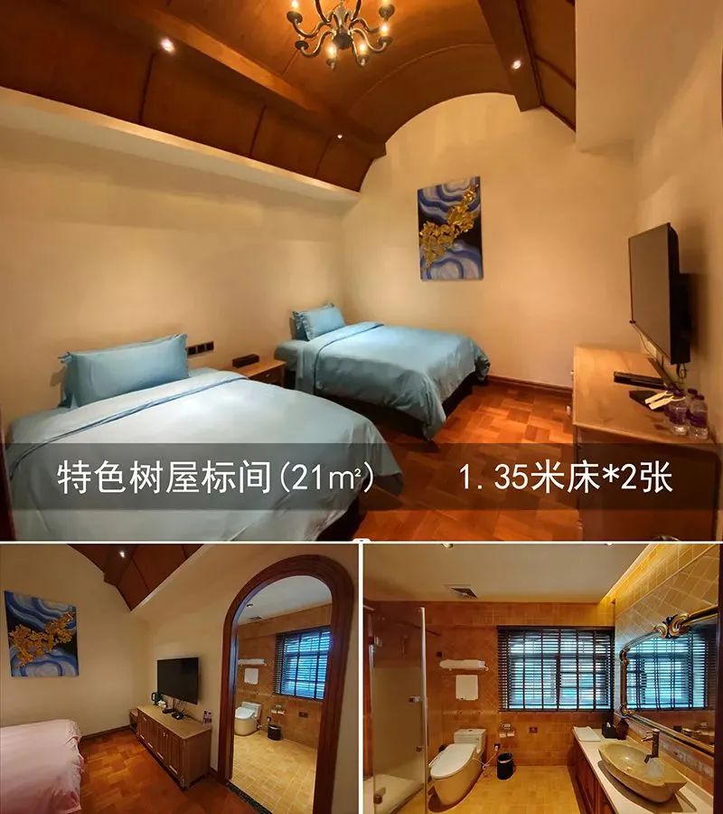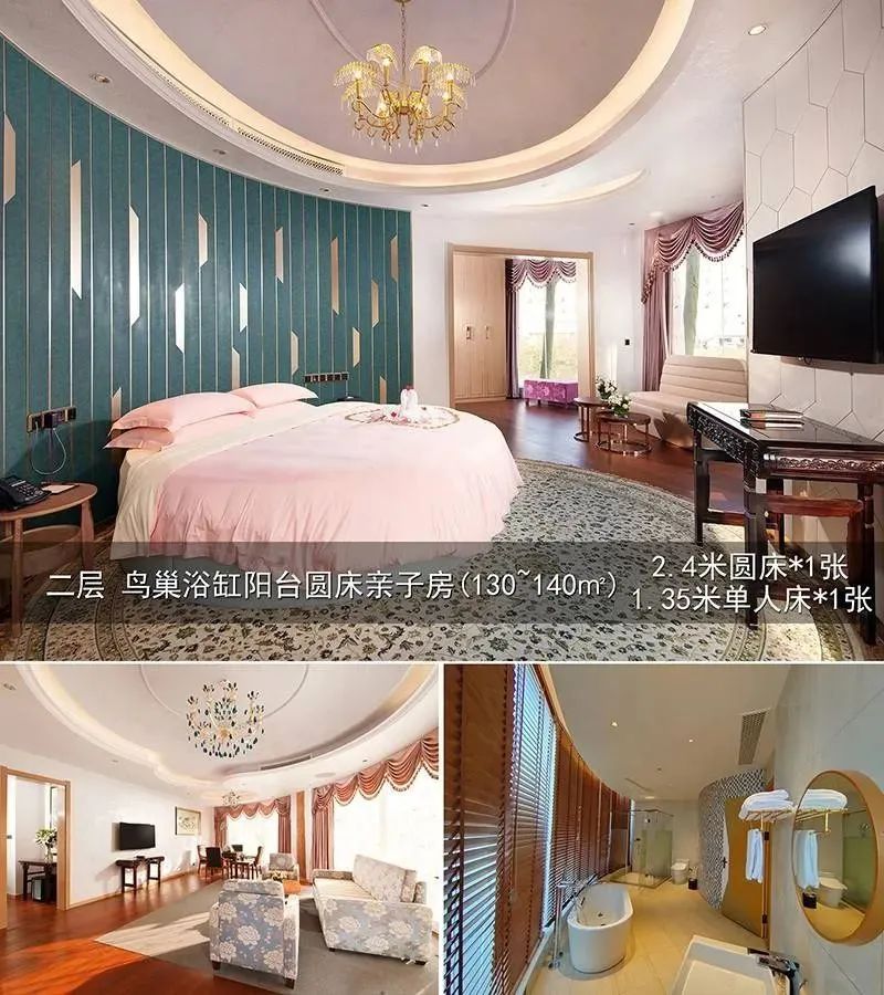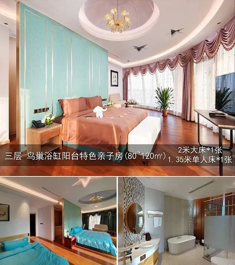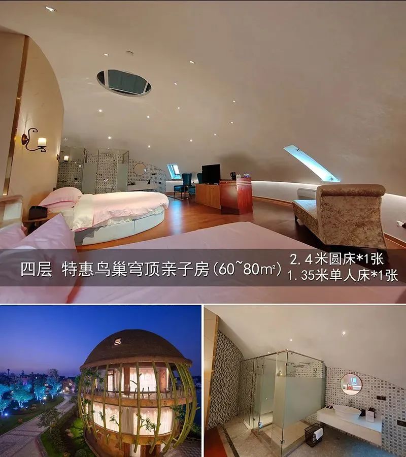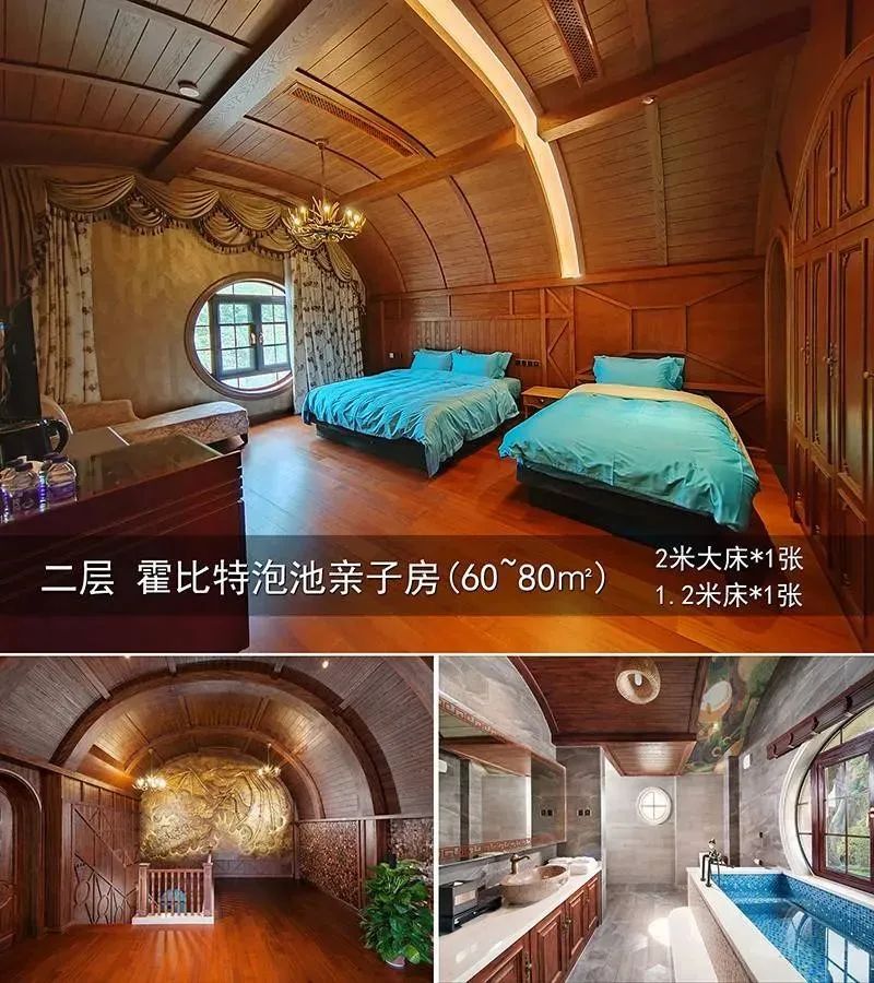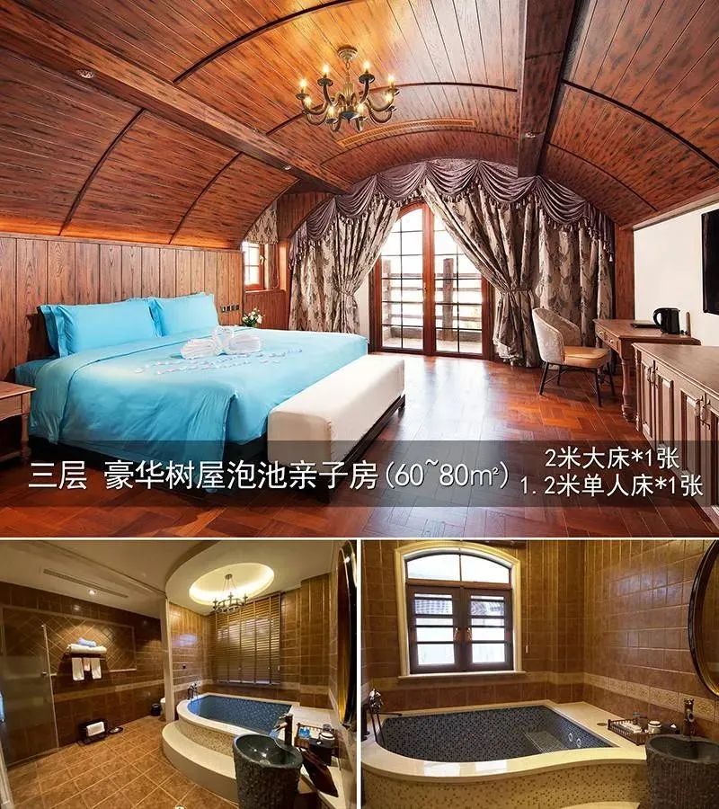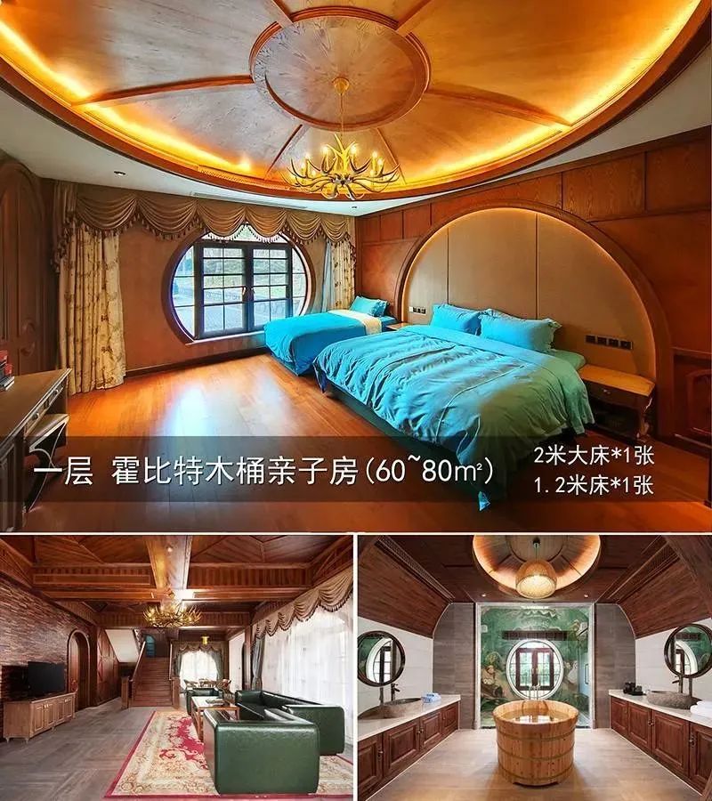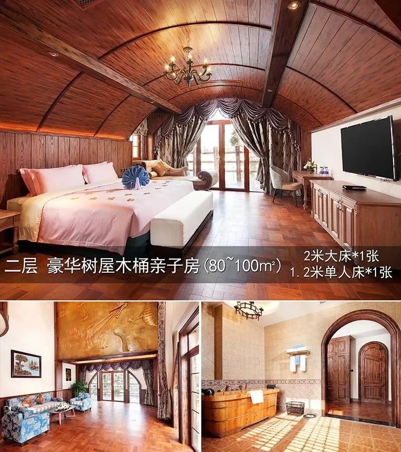 C/D套餐中的亲子房型分别分布在霍比特木桶亲子房1楼、树屋木桶亲子房2楼、鸟巢穹顶亲子房4楼(浴缸)