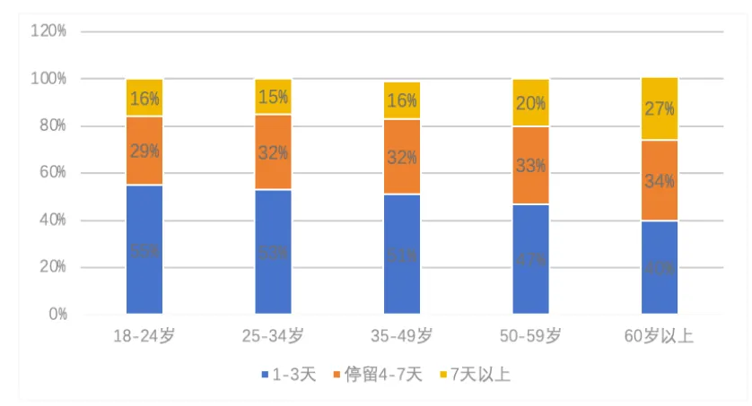 资料来源:携程海外平台数据。 二是远程客源市场快速增长,带动客源市场多元化。以上海为例,马来西亚、新加坡分别以47.15万人次、37.47万人次稳居上海近程客源国前列;在远程客源市场上,美国以54.12万人次成为远程客源国第一,俄罗斯、意大利、澳大利亚包揽上海远程客源国增速前三,全年增幅分别达59.2%52.4%、44.5%。尤其自2025年9月我国对俄罗斯游客试行免签政策后,俄罗斯游客增速显著跃升,单月平均增幅从约45%快速攀升至80%以上(数据来源于上海市文化和旅游局)。 2025年我国入境游市场呈现“中心城市引领、二三线城市崛起、边境区域活跃”的新格局。 一是作为入境游的“第一站”和枢纽,北京、上海、广州、深圳、成都等中心城市继续发挥强大的引领和辐射作用,入境游呈现高速增长。上海市文化和旅游局数据显示,2025 年上海累计接待入境游客达到936.0万人次,同比增长 39.6%,创历史新高,其中外国游客以713.8万人次,同比增幅近50%,构成绝对主力(数据来源于上海市文化和旅游局)。北京市文化和旅游局数据显示,2025年北京共接待入境游客548.0万人次,同比增长39.0%,其中外国旅游455.7万人次,同比增长41.8%;实现旅游花费505.6亿元,增幅达44.7%,创历史新高。广东省文化和旅游工作会议指出,广东2025年接待入境游客超9000万人次,旅游外汇收入超2000亿元,分别同比增长38%和54%。 二是重庆、山西大同、河南登封、江西龙南等二三线城市凭借独特的城市风貌、深厚的文化IP或高性价比的体验,成为入境游“黑马”,吸引游客深入探索。2025年最显著的变化是,二三线城市逐渐由国际游客国内热门线路中的“过境地”转变为国际游客专程探访的“目的地”。如重庆凭借独特的城市地貌及“甲亢哥”“库里中国行”等国际文体事件的带动,入境客流同比增长170%,部分商圈酒店预订量激增8倍(数据来自《2025中国入境游年度报告》)。山西大同凭借云冈石窟的震撼与中转便利性,叠加文化热潮,成交票量同比激增7倍,成为年度增长亮点。 三是黑龙江黑河、广西东兴、云南磨憨等边境城市依托地缘优势和区域性免签政策,发展出独特的跨境旅游和商贸业态,成为新的旅游热点。黑河以“冰雪+文化”“冰雪+体育”“冰雪+国际交流”融合模式推动跨境旅游快速增长。据央视网消息,我国自2025年9月15日对俄罗斯实施免签后,截至12月31日,黑龙江黑河口岸接待免签俄罗斯旅客9.1万人次,“界江观光+民俗体验”线路预订量同比翻番。据央视新闻报道,2025年以来,东兴口岸日均客流达2.4万人次,东兴边检站累计查验越南入境旅游团超1.4万个。据云南省政府新闻发布,2025年,磨憨铁路口岸查验出入境旅客29.15万人次、同比上升7.3%,中老铁路“黄金线路”价值凸显。 我国入境游消费主要集中在一线城市为主,且购物消费增速明显,入境游产品中深度游比例不断提升。 一是入境游客消费高度集中国际知名的现代化都市。世界旅游联盟发布的《2024-2025跨境旅游消费趋势研究报告》显示,2024年7月至2025年6月,入境游客消费总额排名前十的城市依次为:上海、广州、北京、深圳、成都、杭州、张家界、苏州、厦门和南京。不同来源地的入境游客在消费城市选择上存在明显偏好差异。从人次分布来看,日韩及东南亚游客相比欧美等客群,更倾向于前往川渝湘等地区消费。从消费金额来看,美国和英国持卡人更偏好在北京消费,其交易额高于广州;而韩国游客消费额排名前三的城市分别为张家界、上海和延吉,在张家界的卡均消费水平甚至超过上海。 二是从入境消费类型看,购物消费呈现高速增长态势,退税商品销售成为消费新增长点。国家税务总局数据显示,2025年全国办理离境退税的境外旅客数量同比增长305%,离境退税商品销售额同比增长95.9%,离境退税额同比增长95.8%。购物消费的快速增长主要是由离境退税政策完善和离退税服务效率的极大提升带动的。2025年,全国新增大连、湖北、吉林、贵州、内蒙古、山西、青海共7个离境退税政策实施地区;自2025 年5月起中国国家税务总局推广“即买即退”服务,平均退税时间大幅缩短,进一步优化了游客购物体验。截至2025年底,全国离境退税商店总数达12930家,其中提供“即买即退”服务的商店超过7000家。 三是偏好深度游的比例提升,且入境中老年游客更倾向于深度游。随着免签政策对于停留时长的持续放宽,偏好深度游的游客比例不断提升。《2024-2025跨境旅游消费趋势研究报告》显示,相比 2024 年,2025 年上半年各年龄段游客入境停留时间持续变长,进行 1-3天短期旅行的比例均持续降低。以25-34岁和35-49岁年龄层为例,1-3天短期旅行的比例分别从55%降为53%以及54%降为51%。更多的入境游客不再满足于“特种兵”式旅程,而是倾向于深度体验中国的独特魅力。同时,入境中老年游客更喜欢深度游。2025 年上半年,在18-24岁的入境游客中,停留4-7天份额为29%,停留7 天以上的份额为16%;在50-59岁及60岁以上的中老年游客中,停留4-7天的占比分别达到了33%和34%,停留7天以上的占比达20%和27%。