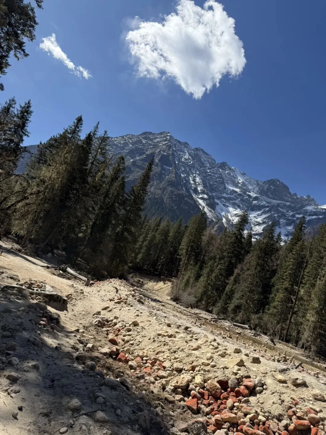 3.徒步约1小时途径枯树滩有小卖部,可休息调整。约9点半抵达。