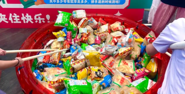 景区特别准备了“奇妙福味零食派对”,在指定商服消费满100元的游客即可参加~超解压的巨型筷子夹零食挑战考验手速,夹多少送多少,轻松实现零食自由!
