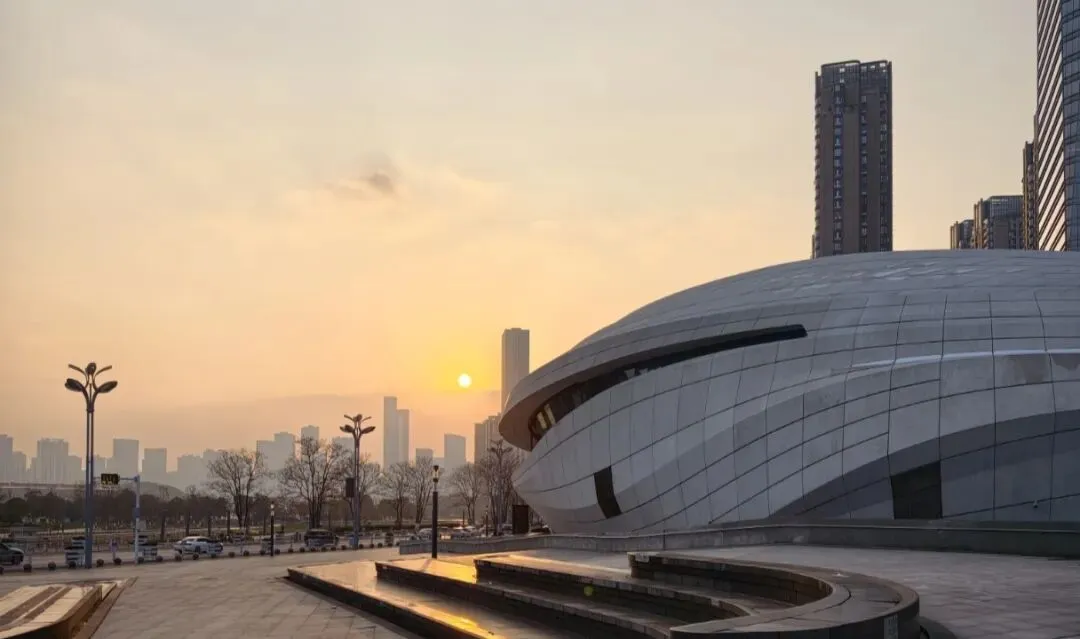 由英国设计师扎哈·哈迪德设计,其三个单体建筑从空中俯瞰像飘落在梅溪湖畔的三朵芙蓉花。