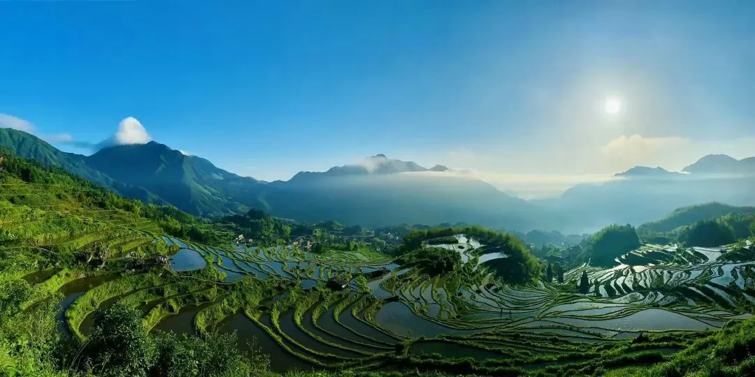 春水盈田,银波荡漾;夏禾葱茏,绿浪翻涌;秋收金黄,如诗如画;冬雪覆垄,静谧辽阔。梯田、云海、山村、竹海、溪流、瀑布、雾凇交相辉映,在四季流转中演绎着农耕文明的韵律。