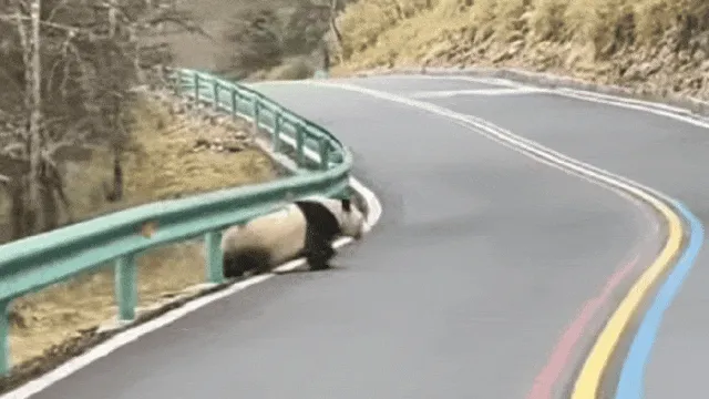 据视频显示,当时景区观光车正搭载着游客在行驶途中,突然从马路旁边出现一只野生大熊猫。观光车及时停下,这只看起来十分健康的野生大熊猫迈着健硕的步伐,很快便穿过马路,向一旁的山林中跑去。