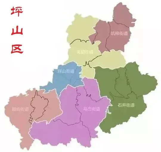 坪山区下辖6个街道,另设有1个保税区:坪山街道、马峦街道、碧岭街道、石井街道、坑梓街道、龙田街道,区政府驻坪山街道深汕路。