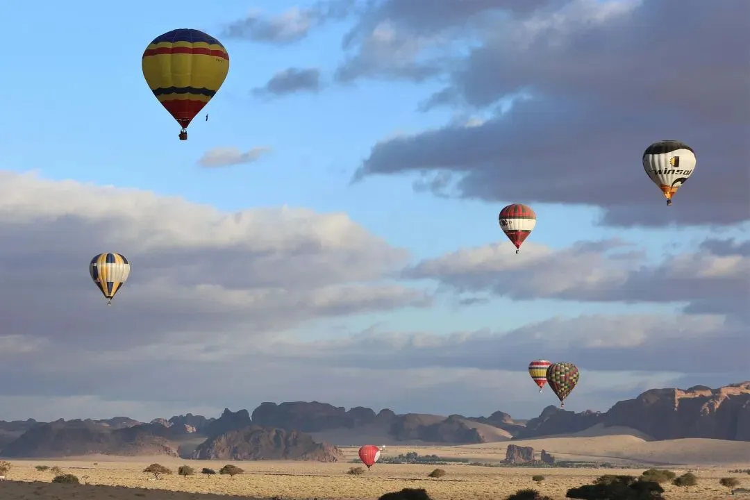 (1)乘坐热气球观看壮丽的岩石和AlUla的沙漠景观
