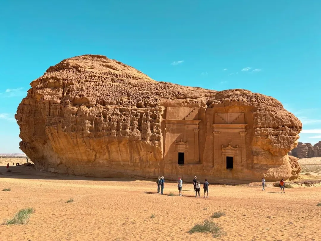 (1)Lihyan Son of Kuza墓高近72英尺,是赫格拉最大、最具标志性的墓葬,尚未完工,墓底三分之一处仍可见凿痕。它提醒人们纪念碑背后的人手,也是该地最常被拍摄的地标之一。