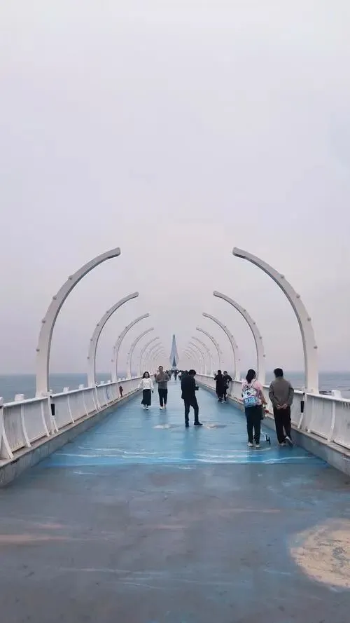 栈桥日出最稳,早点到,云一红,桥就美。