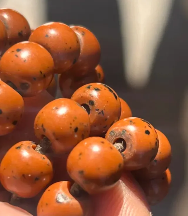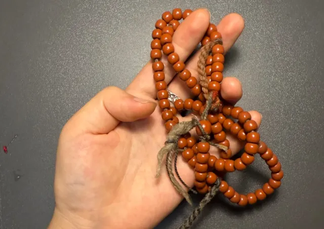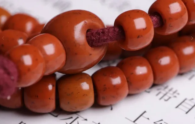 第一眼看过去平平无奇,他心里一阵嘀咕:这玩意儿就是那个游客丢的塑料串儿吧?但是颜色红得发“闷”不透也不亮,跟商场里光亮发贼亮的塑料佛珠,完全不像一回事。