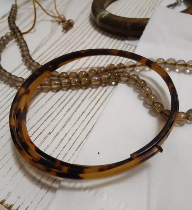 赛璐璐是早期人造材料,有年代感,也常被“象牙替代”,但赛璐璐的观感一般“透”一点,老化之后还会有一些特殊的气味和细纹。
